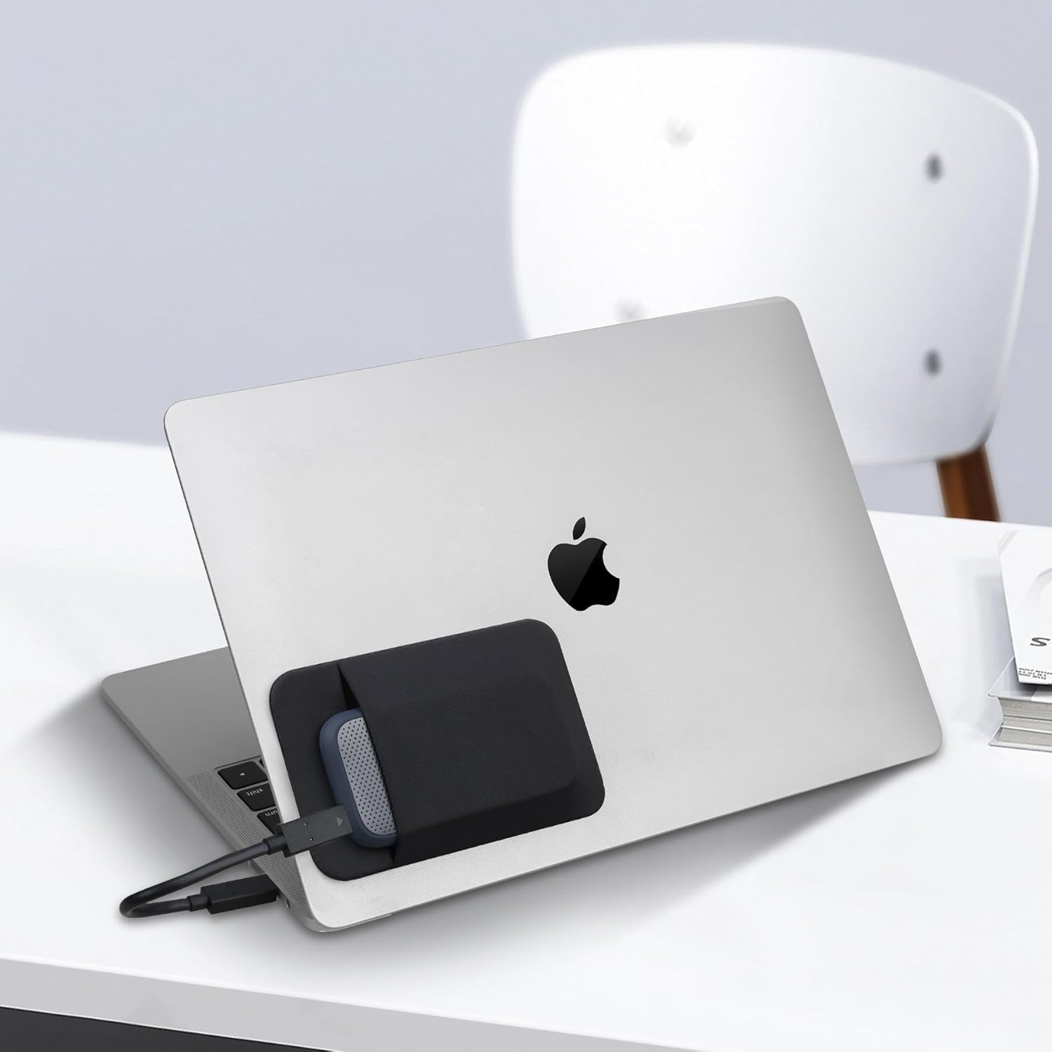 - Keep Your SSD At Your Finger Tips: This ssd laptop holder can be attached to your laptop, MacBook, iPad, you can put your portable SSD, USB hubs, charging cables, card reader, Magic Mouse, earbuds, Airpod or Airtag in this adhesive pocket of the laptop. After that, you’ll never forget your laptop accessories at home again.