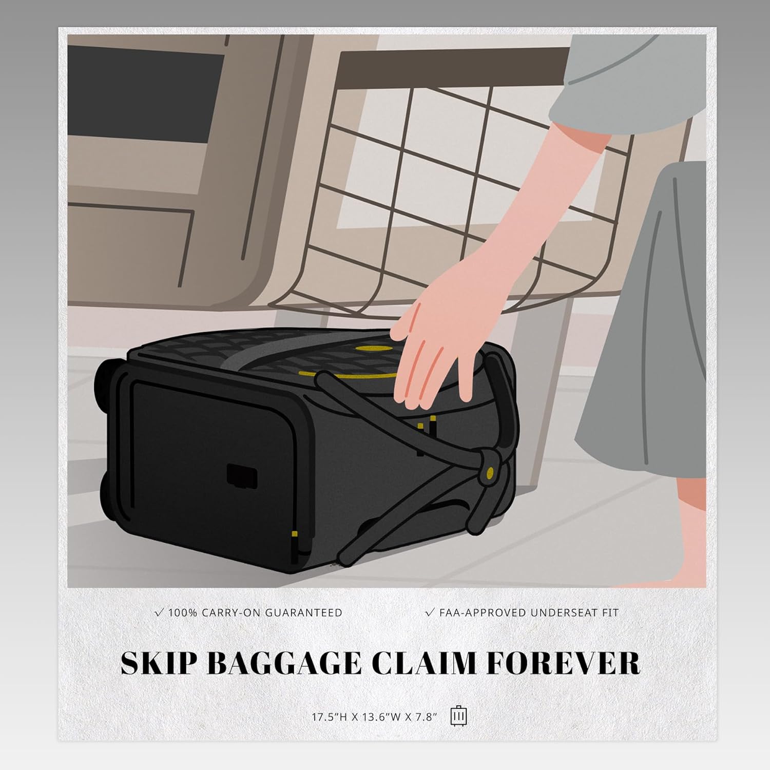 - Guaranteed Underseat Fit-No Gate-Check Stress: Sized at 17.5"x13.6"x7.8", this underseat carry-on fits seamlessly beneath all major U.S. airline seats. Bypass overhead bin battles and breeze through boarding—every time
