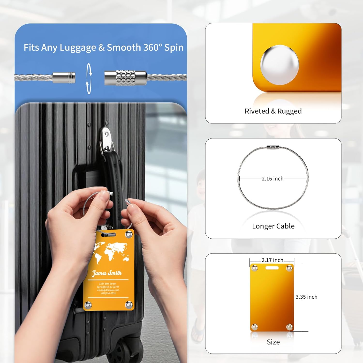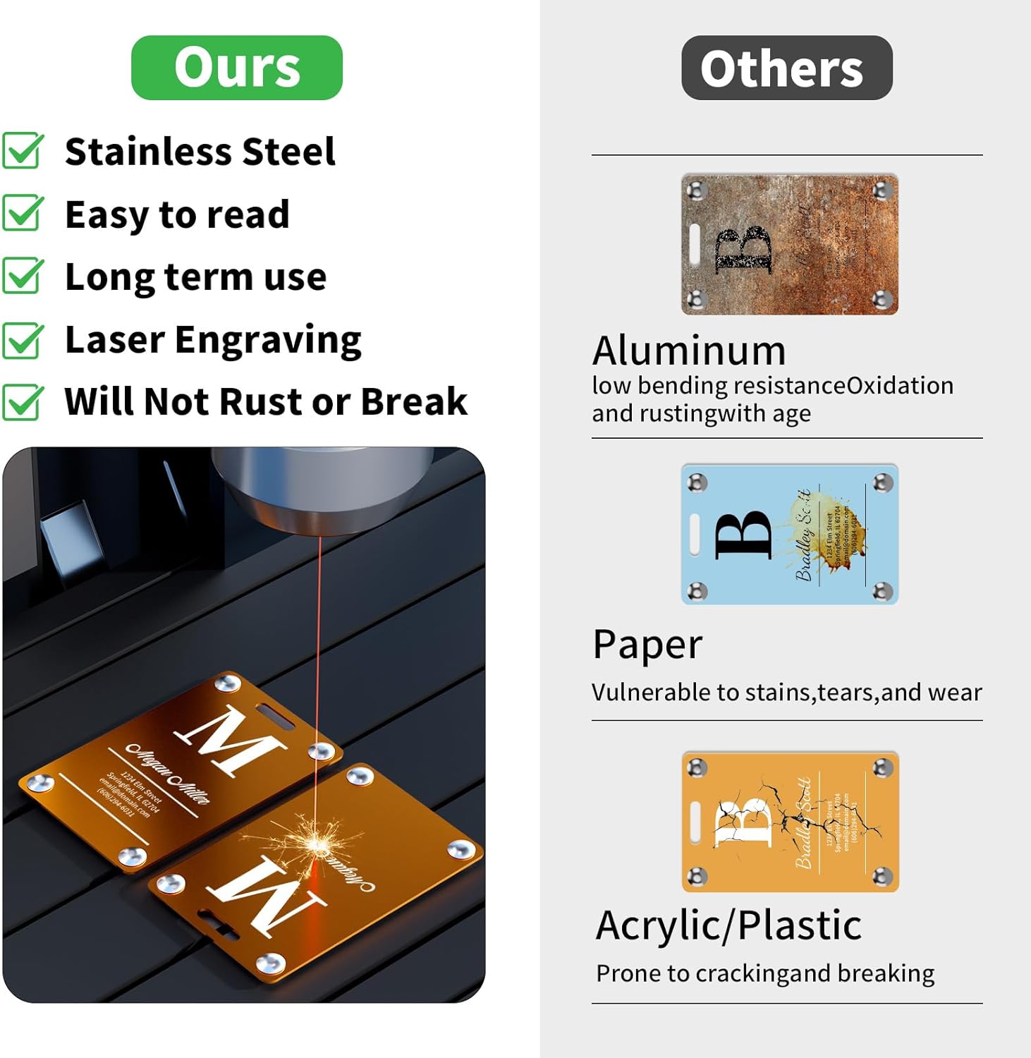 - Clear Identification: Each tag features laser-engraved lettering that offers strong contrast and long-lasting readability. Whether you're at the airport, on a cruise ship, or traveling with a group, these personalized luggage tags for suitcases help you quickly identify your bags without confusion.