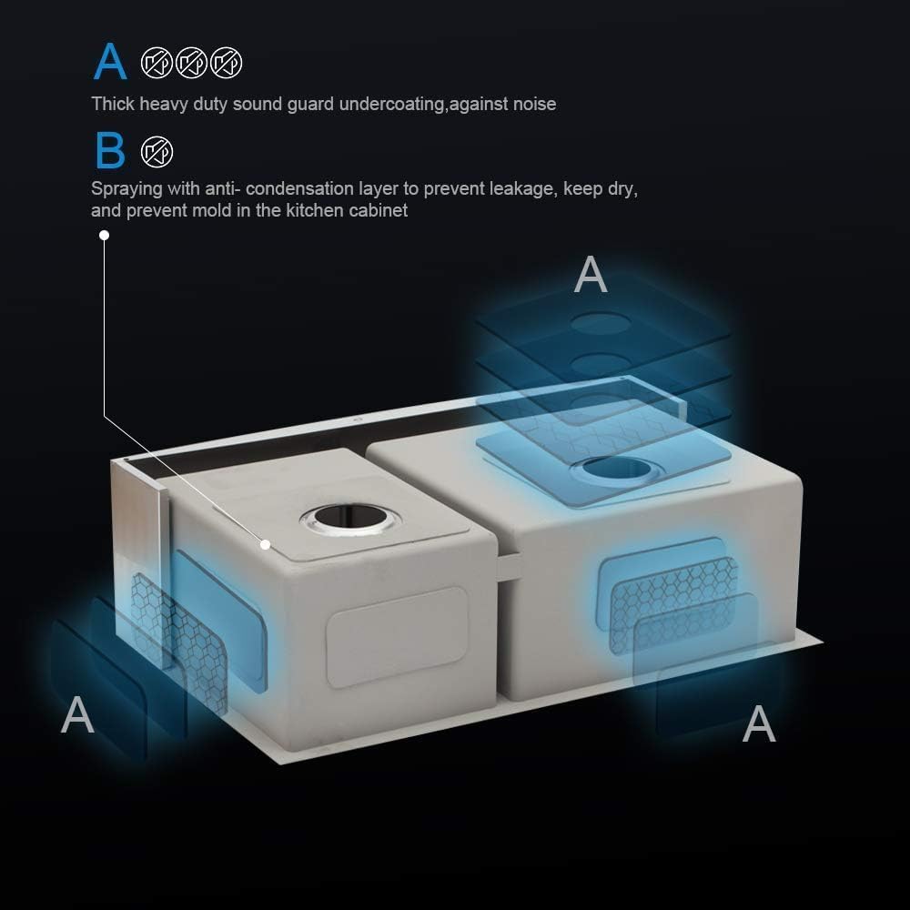 - Fast Drain and Sound Proof---Lordear 36 inch Apron front double bowl farm sink is designed with X-shaped diversion water design and a gently sloped bottom to prevents standing water inside the bowl, drain more fast. 3mm rubber pads and full coating on the back ensure better sound dampening ability, our double bowl farm kitchen definitely is a competitive choice for your kitchen remodling project.
