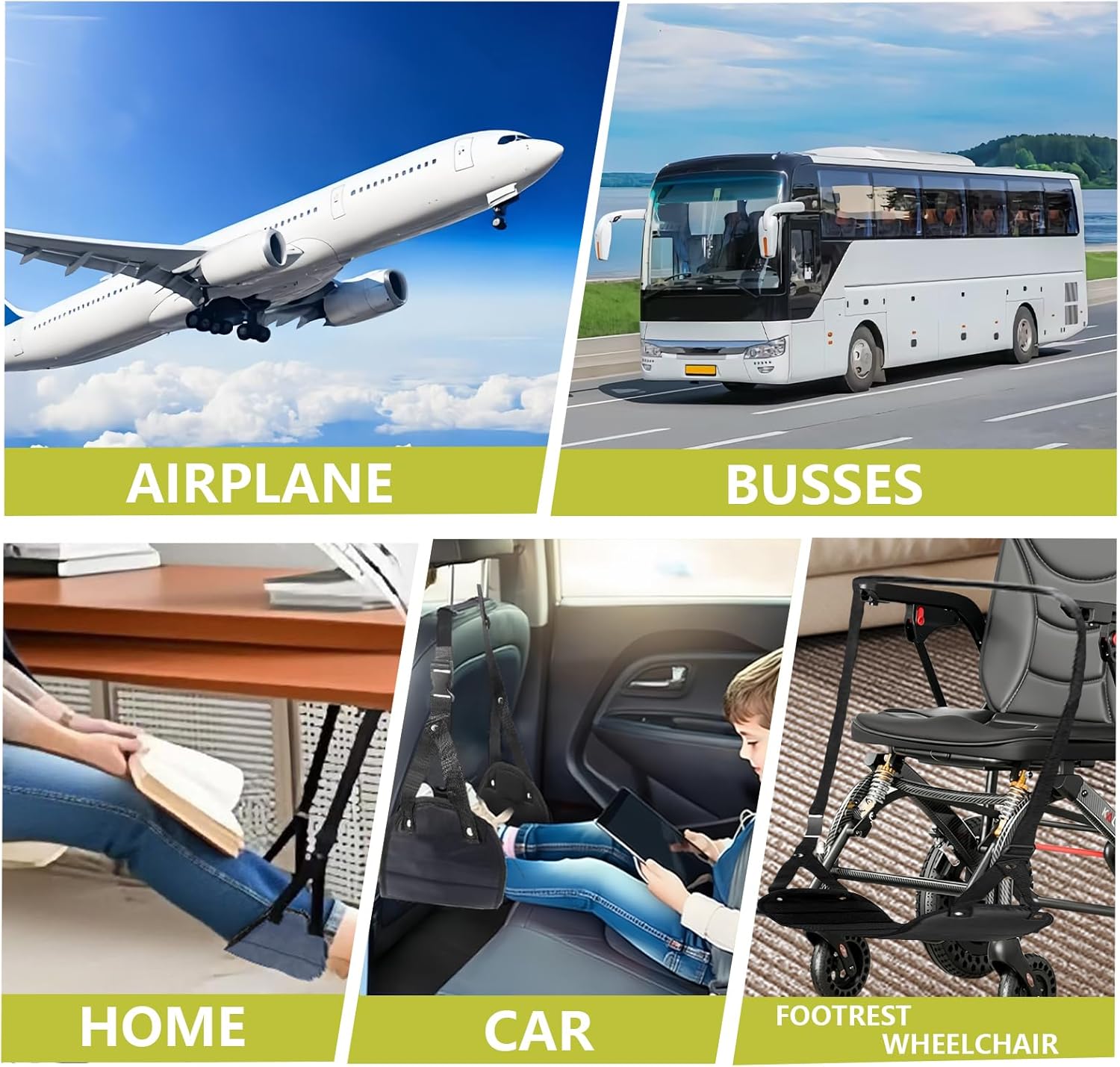 - Travel Essential - Our airplane foot hammock is a must-have for long-haul flights. During long flights, you may suffer from swollen and aching legs. Designed to improve blood circulation, our travel foot hammock helps relieve leg swelling and discomfort, giving you a cozy experience