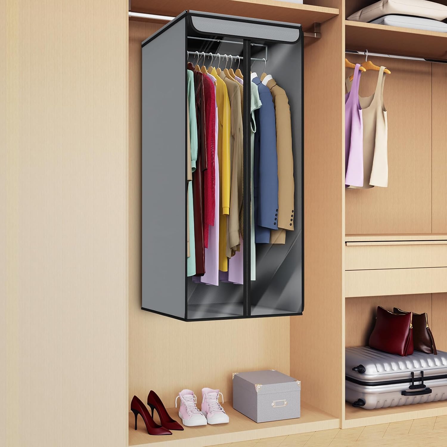 - [Easy Assembling and Moving] NO screws and NO tools needed. You can easily make the hanging wardrobe storage bag work within 3 minutes. When you want to change storage area, just move the garment bag by holding the 3 hooks and hanging to the new rod.