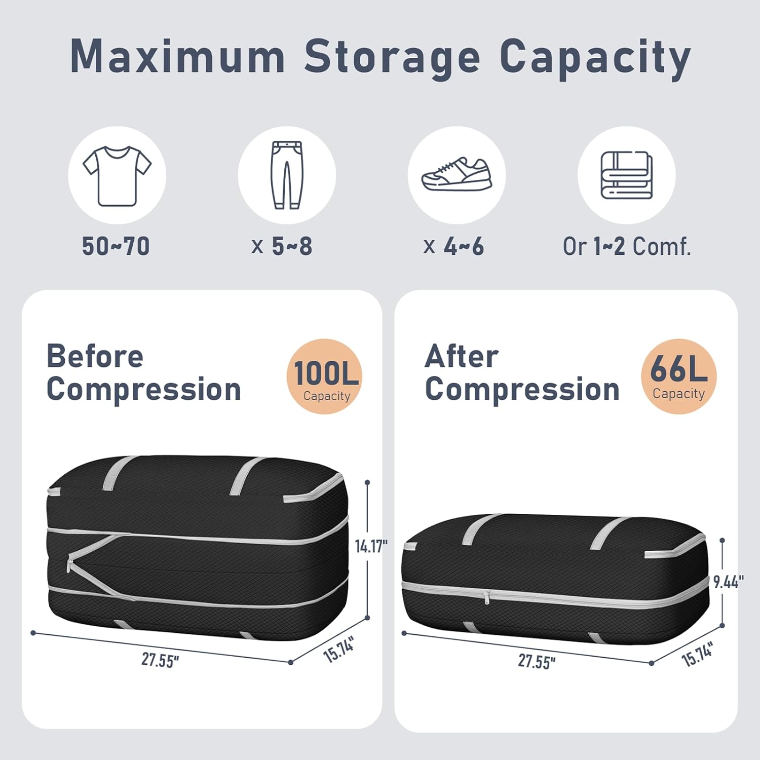 - [Innovative Built-In Compression Storage Design]Simplify your storage routine with DIMJ’s ultra space-saving self compression organizer. Just fill the bag with your comforters, clothes, or cushions, zip it up, press to release air, and zip the center compression line to reduce its volume. Ideal for maximizing space in your college dorm, closet, or during travel, this compression bag is a smart solution for organizing bedding and blankets.