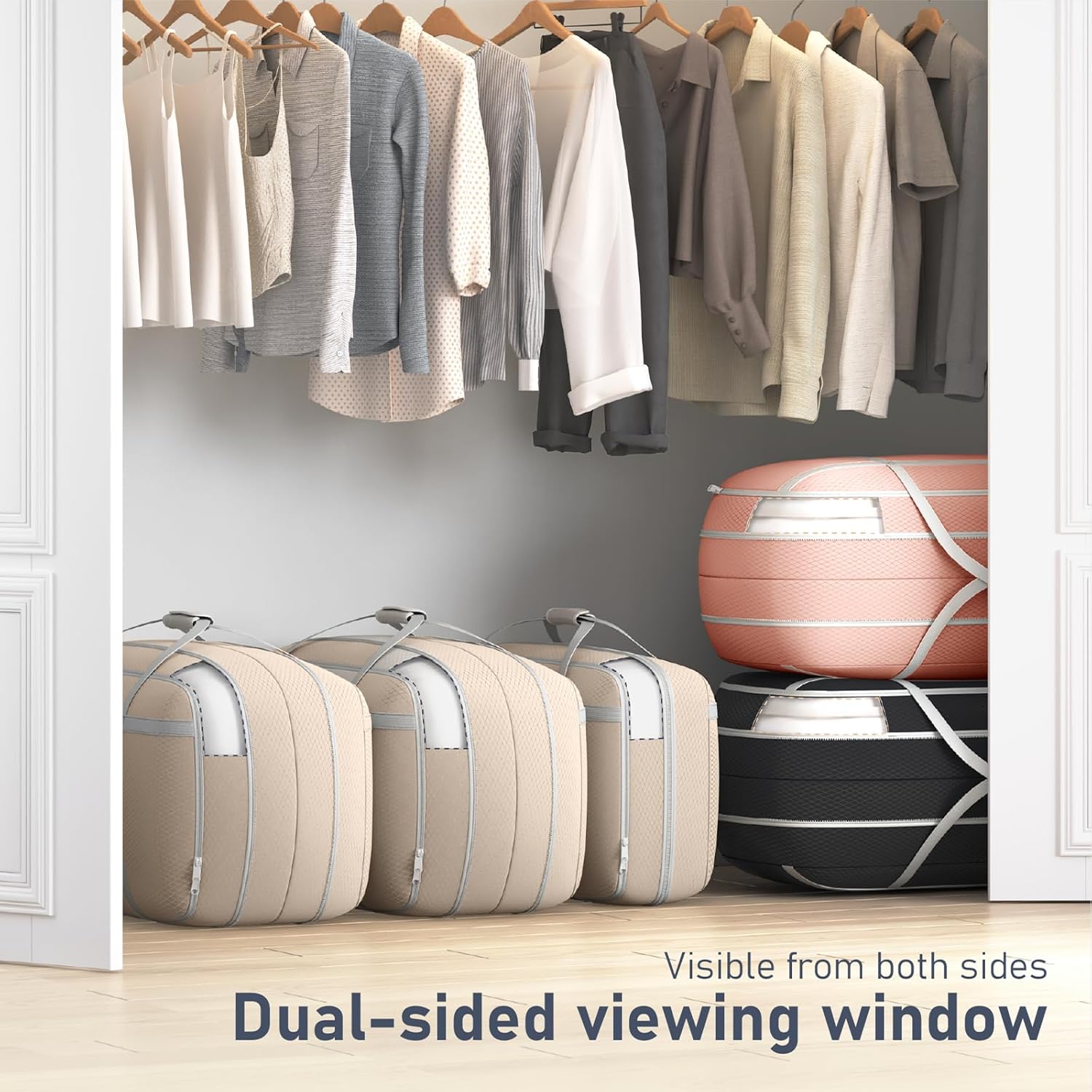 - [Dual Clear Windows & Label Slot for Easy Sorting]Each bag features dual transparent viewing windows and a label card slot, making it easy to identify contents whether the bag is stored vertically or horizontally. This smart feature is perfect for organizing clothes, blankets, and bedding during a move or seasonal change.