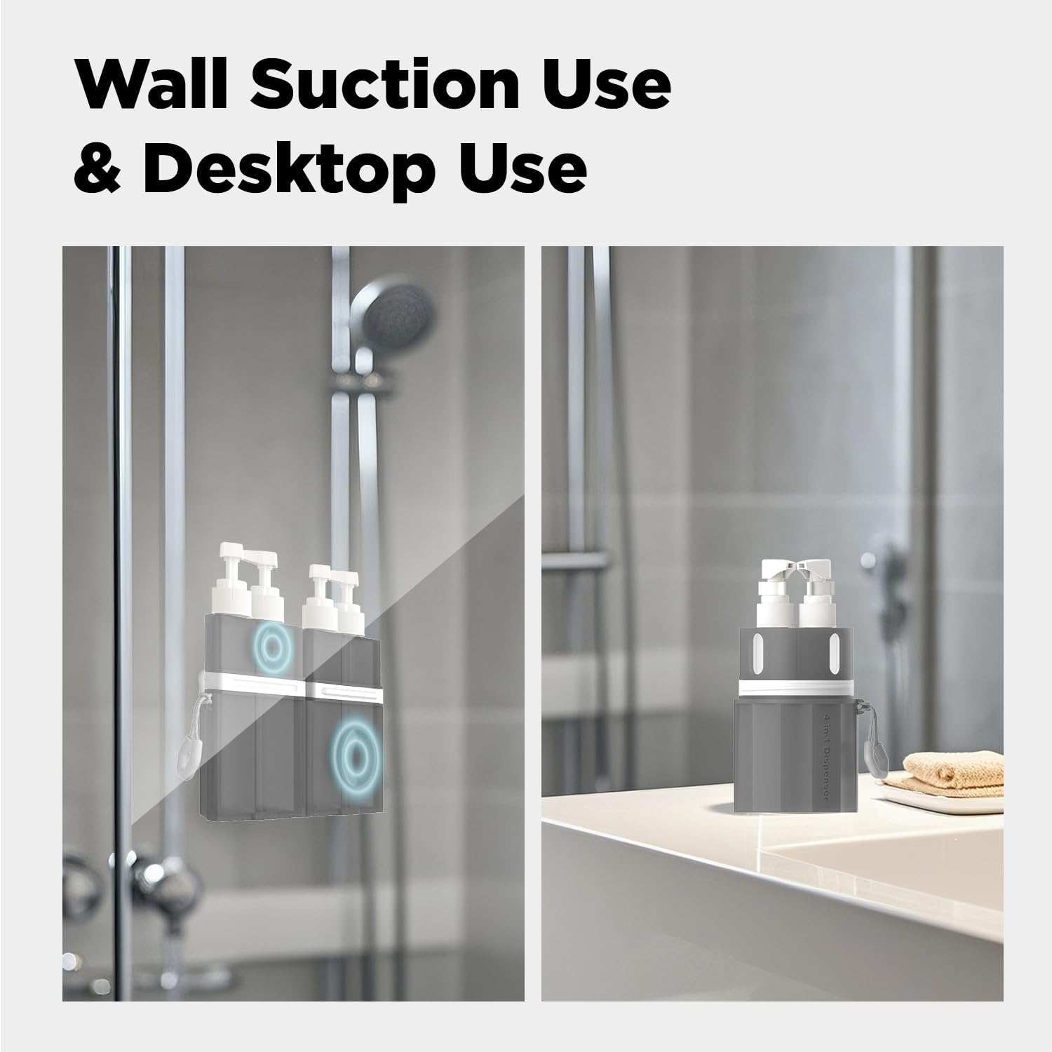 4 in 1 Travel Toiletry Containers,TSA Approved Refillable Travel Size Toiletries Bottles Set with Suction Cup for Smooth Walls - for Shampoo,Conditioner,Body Wash,Lotion.(Grey)