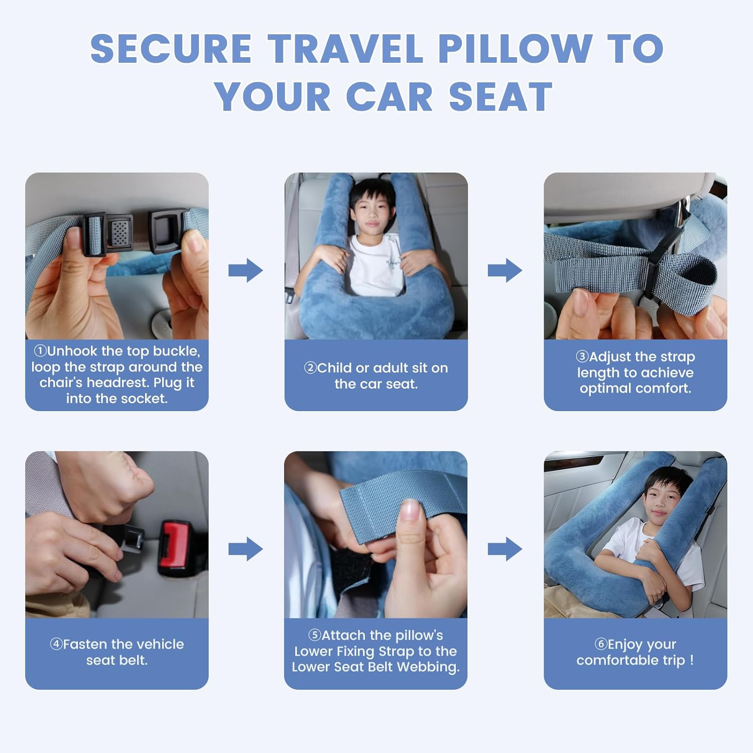 - 【Essential Travel Security】 kids car pillow solves the safety hazard of children's heads flopping during car sleep. Provides perfect support for head and neck, maintain correct posture and eliminat discomfort from seat belts. Perfect for kids and adults on long road trips, flights, trains, or buses.