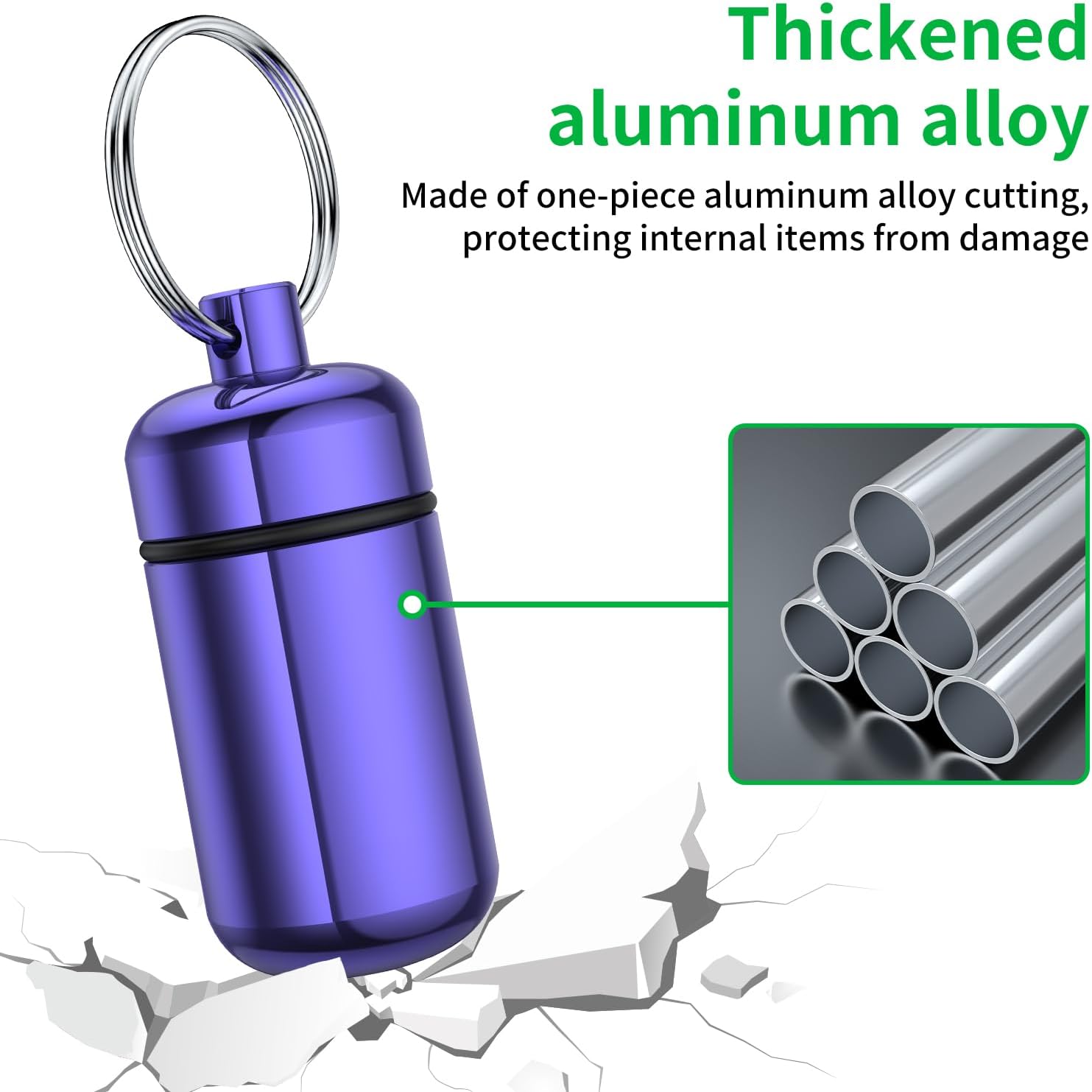 - Metal Keychain Pill Holder: Crafted from premium thickened aluminum alloy material, it is durable and corrosion resistant, exceptionally sturdy to withstand bumps and drops, keeping your pills safe during daily activities.