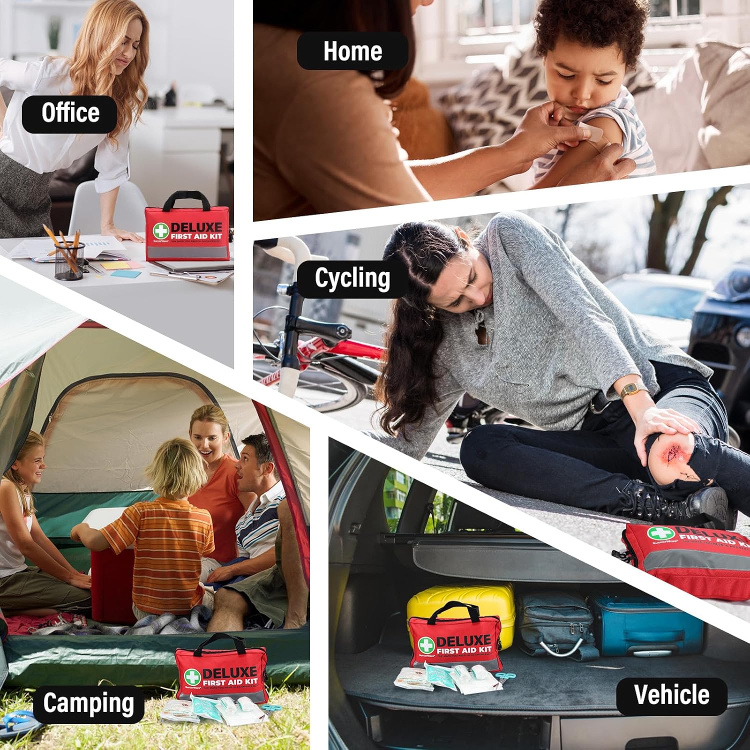 380 Pieces Deluxe First Aid Kit Compact Trauma Medical Kits with Assorted Bandages, Instant Cold Pack, Emergency Blanket for Home, Travel, Camping, Vehicle, Emergency Kits(Red)