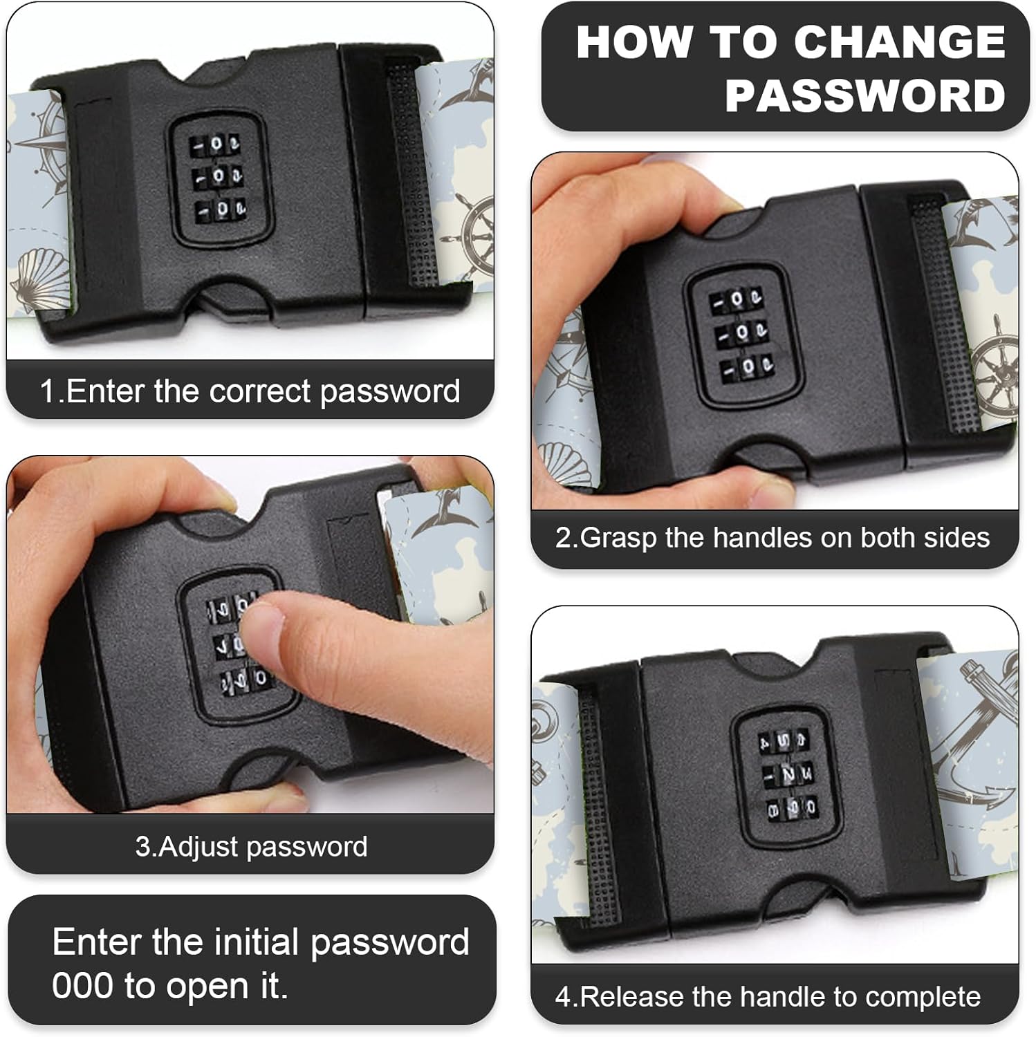 2 Pack Luggage Straps, Adjustable Cute Printing with Combination Lock Luggage Straps for Women Men Travel School Business Trips-Sailing