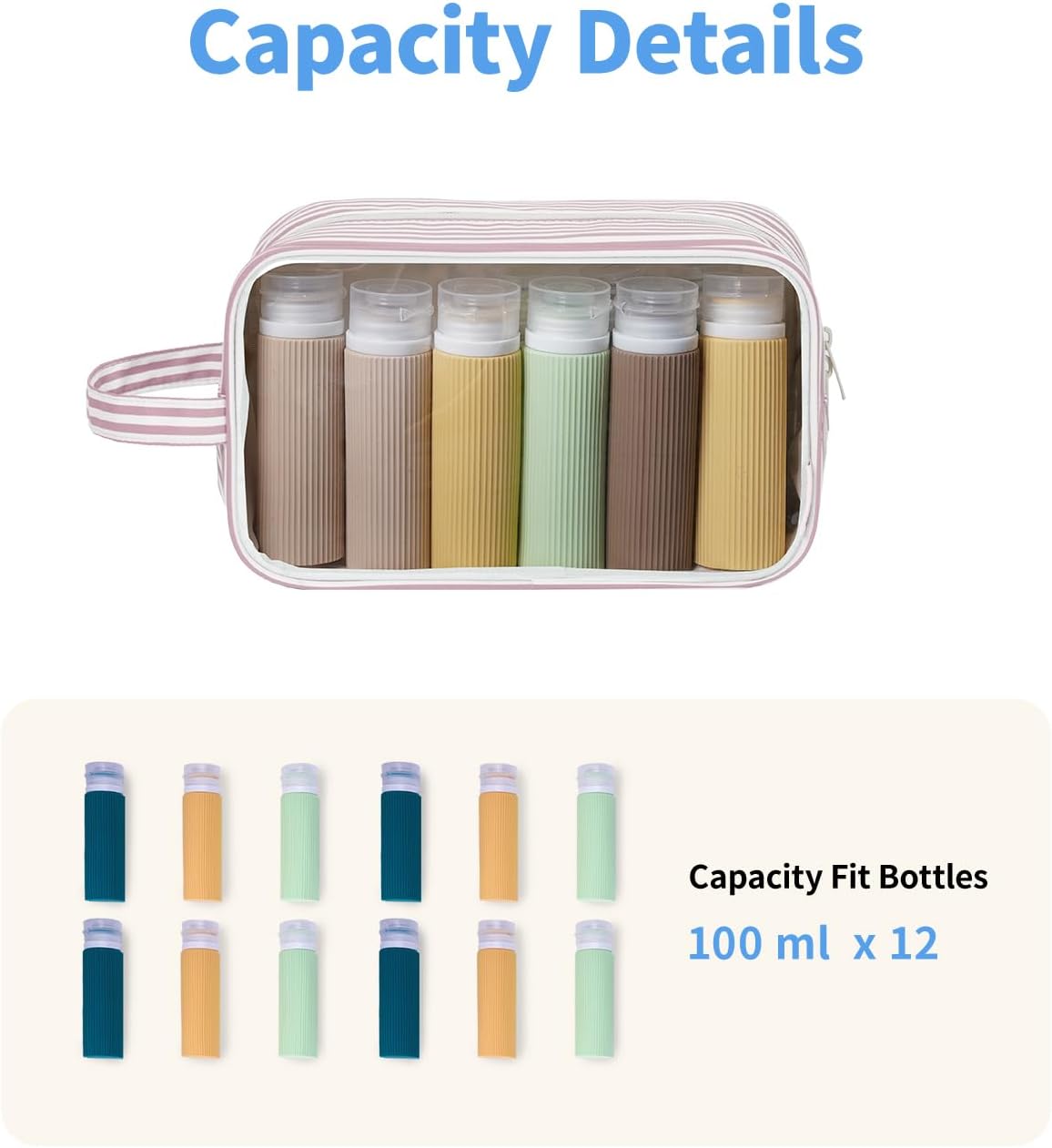 Narwey Clear Toiletry Bags for Traveling Women Men, Clear Travel Bags for Toiletries Makeup Bag Cosmetic Bag with Zipper, Make Up Organizer, Skincare Bag (Dusty Pink Stripe)