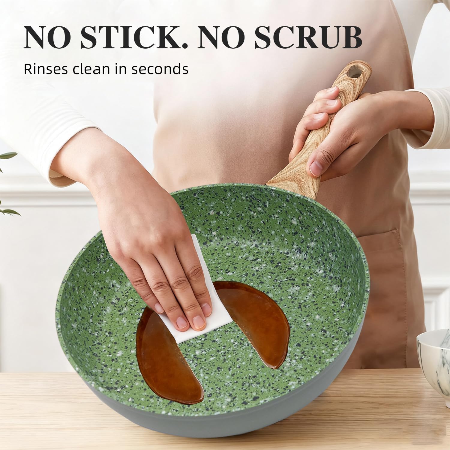 - 【Thoughtful, User-Friendly Design】Features secure-fitting lids to lock in flavor and moisture, and ergonomic wood-grain handles that provide a comfortable, non-slip grip. This set is engineered for comfort and control during all your culinary creations.