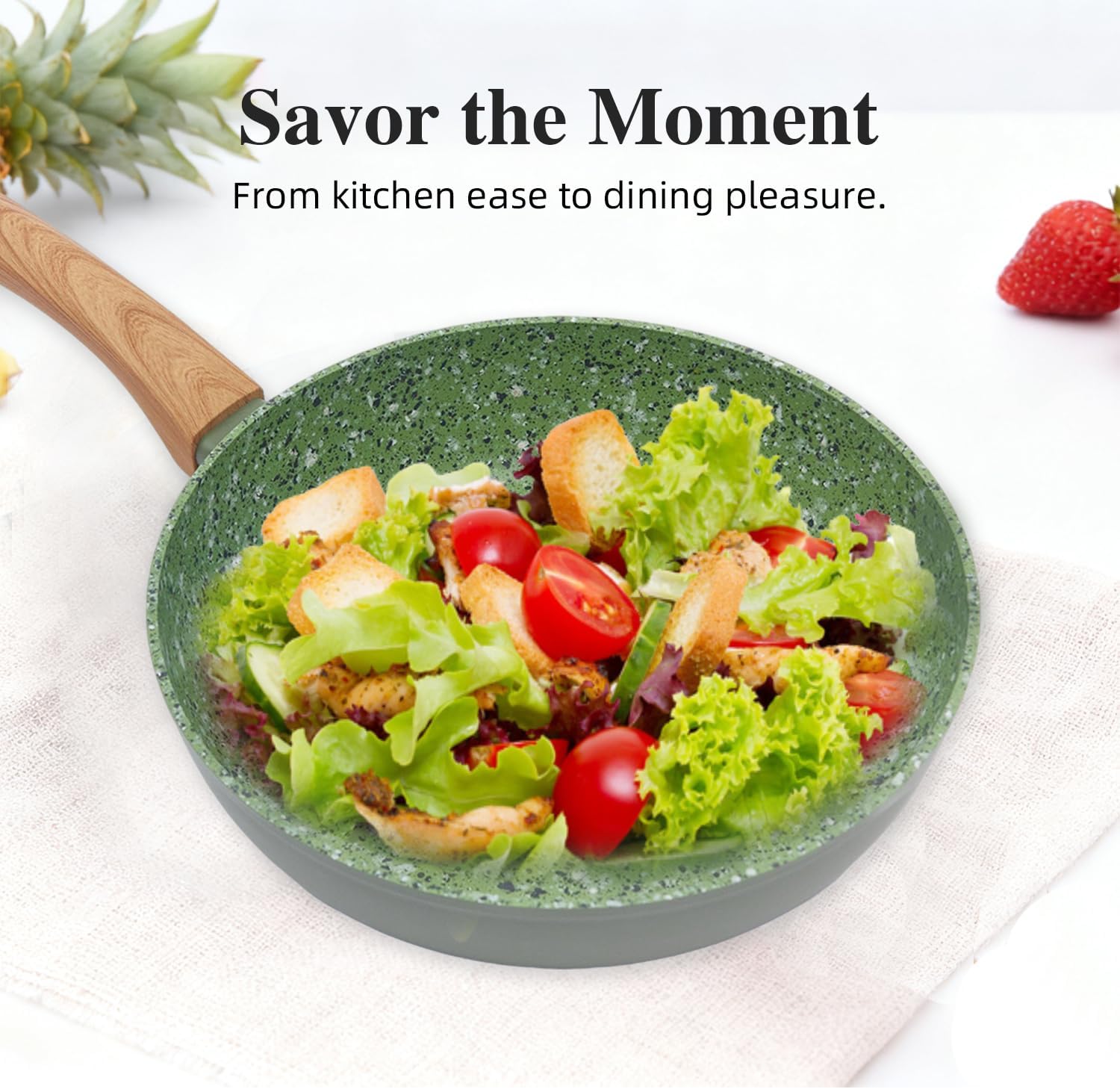 3-Piece Nonstick Pots and Pans Set with Lids, Includes 8.5 Inch Frying Pan 1.5Qt Saucepan and 2.2Qt Stock Pot, PFOA Free Dishwasher Safe Induction Compatible Family Cookware, Green