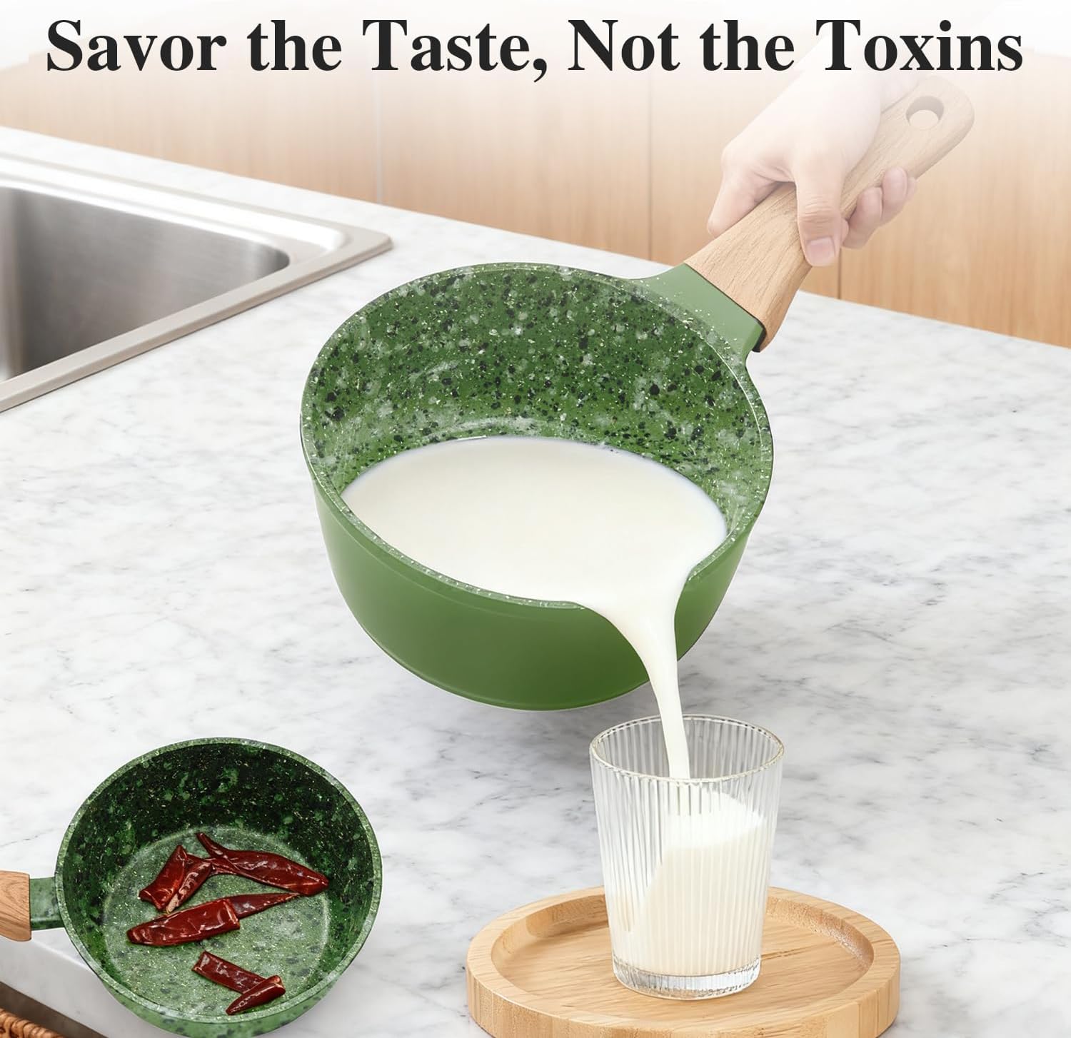 - 【The Essential 3-Piece Set For Every Kitchen】This versatile set includes precisely what you need: an 8.5-inch frying pan for searing and sautéing, a covered saucepan for sauces and sides, and a larger covered stock pot for soups, pasta, and stews. It’s the perfect trio to conquer everyday cooking.