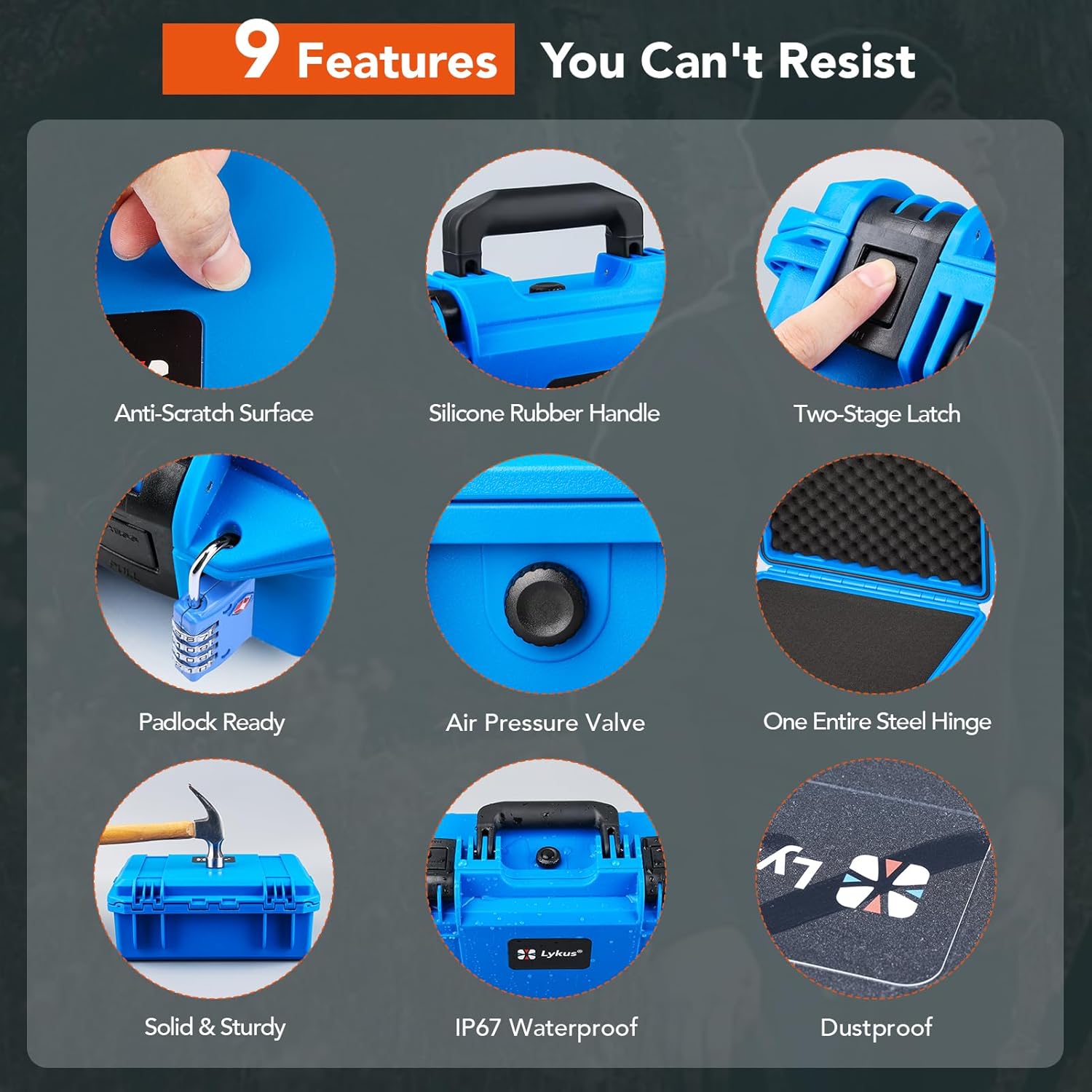 Lykus HC-3010 Waterproof Hard Case with Customizable Foam Insert, Interior Size 11.81x7.87x4.72 in, Suitable for Pistol, Camera, Lens, Drone, Mic, Flashlight, Electronics, Tools, and More
