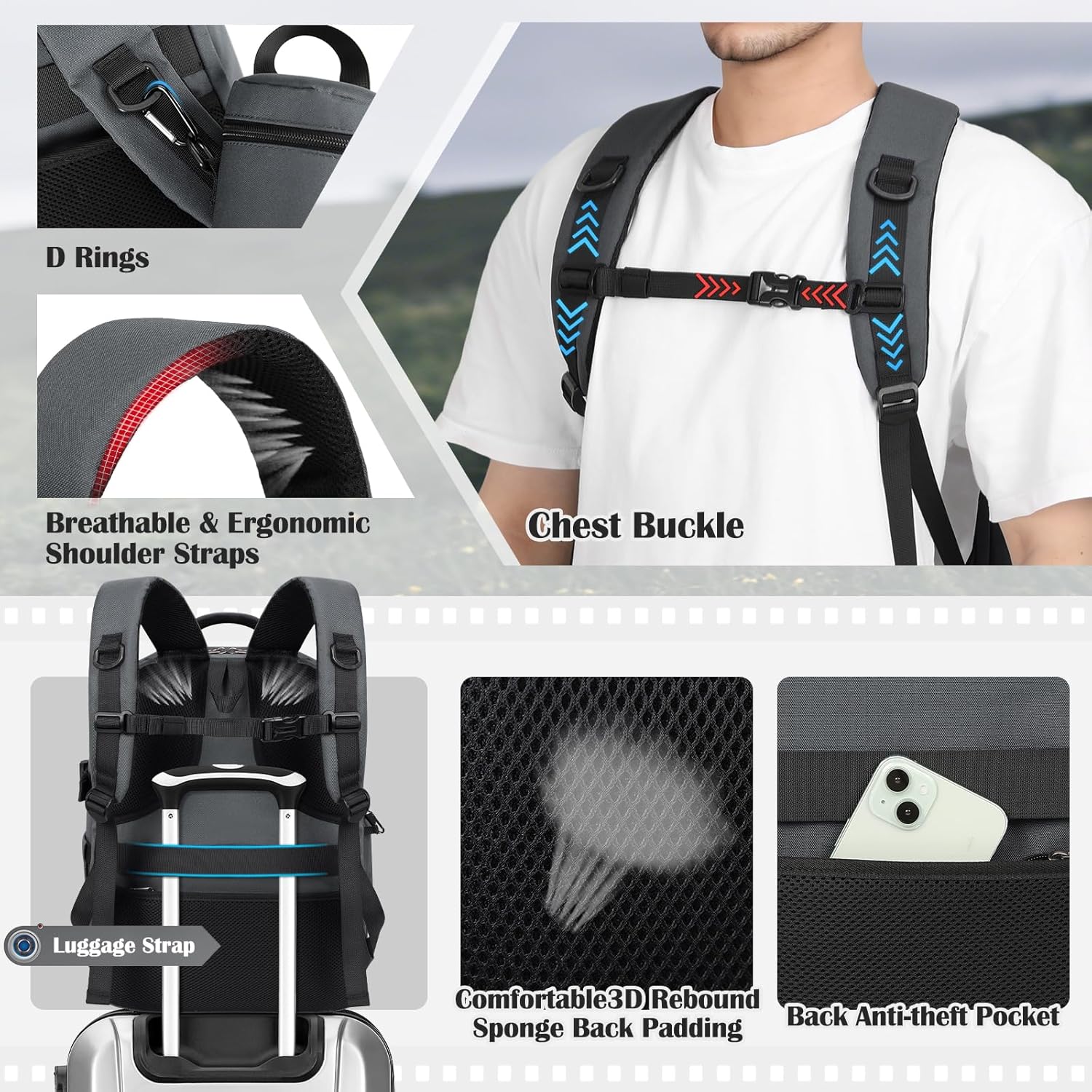 - 【SUPERIOR HARDSHELL PROTECTION & ALL WEATHER DEFENSE】Built to last, the photography backpack crafted from high-quality, waterproof and durable Oxford fabric and features waterproof PU leather hard shell front panel for added structure and protection. The high-density foam padding provides excellent shock and drop resistance for your internal equipment. For ultimate weatherproofing, an additional rain cover is included, offering double protection against rain and dust.