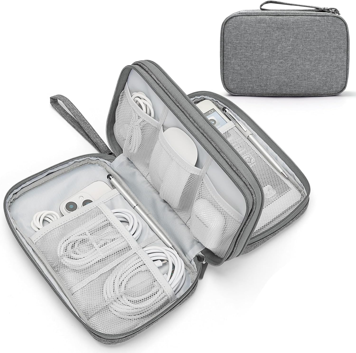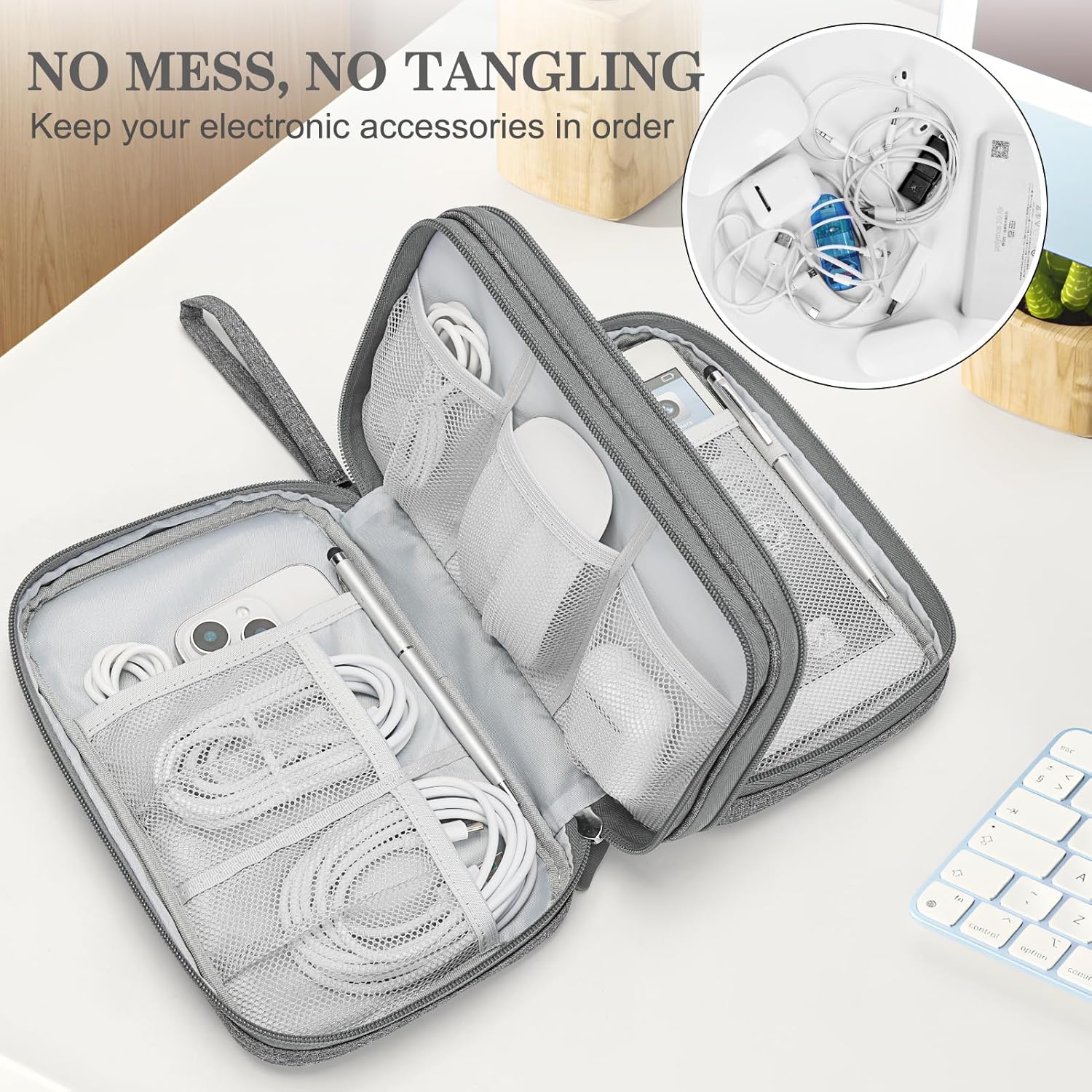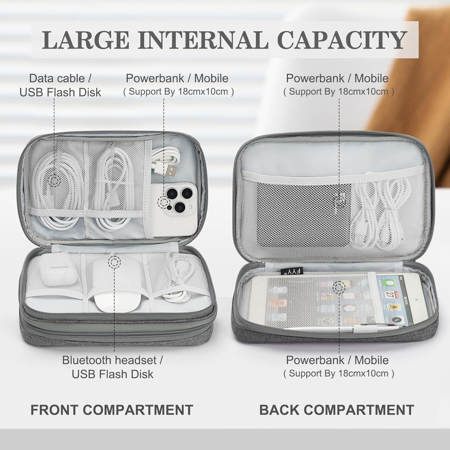 - Double Layers Design: The electronics storage bag has 2 layers interior compartment with enough space to take in your cords, cables, USB drive, cellphone, charger, mouse, flash drive, and other accessories