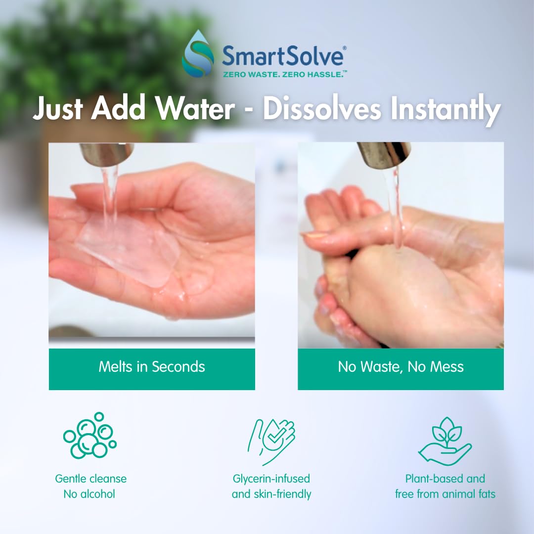 - π£π’π₯π§ππππ π§π₯ππ©ππ π¦πππ: Slim, lightweight, and easy to carry, SmartSolve soap sheets fit perfectly in purses, backpacks, glove compartments, and carry-on luggage. An ideal alternative to bulky soap bars or leaky hand sanitizersβperfect for travel, work, hiking, school trips, camping, or public restrooms.