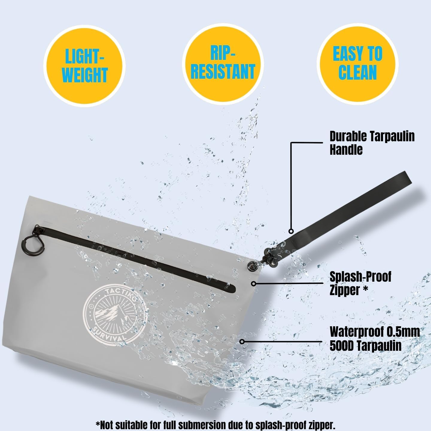 - Rugged Protection for Any Adventure: Made from 500D PVC tarpaulin with welded seams, this zippered pouch protects your essentials from splashes, sand, dust, mud, and light rain. Ideal for camping, hiking, beach trips, cruises, and travel, it keeps gear secure in unpredictable conditions.