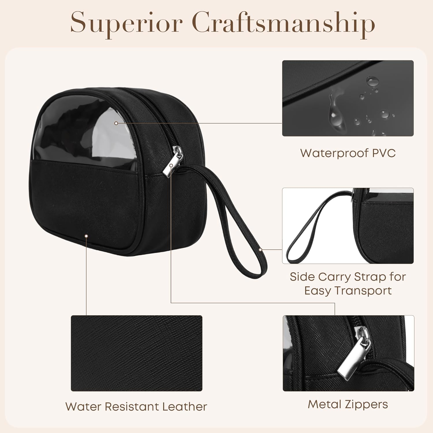 - Waterproof & Leak-Resistant Construction-This cosmetic bag features waterproof PVC+PU laminated material with reinforced seams to prevent splitting.The water-resistant material is easy to wipe clean (note: zipper is not fully waterproof), effectively containing minor spills.