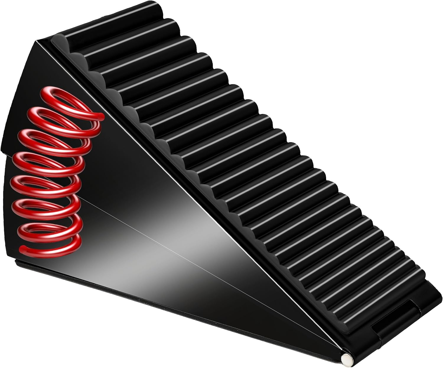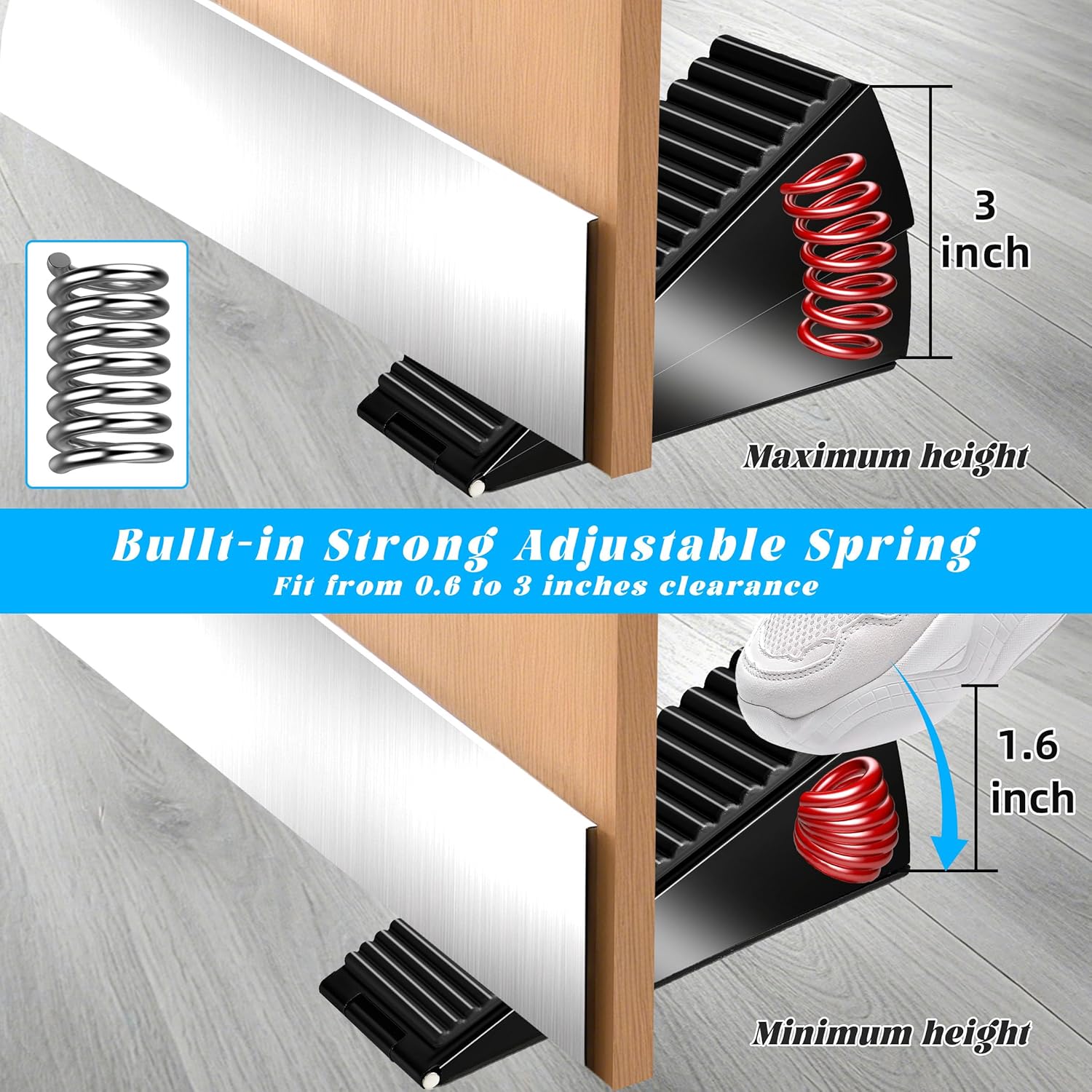 - [Easily Solve Your Troubles] The spring door stoppers are constructed from a combination of rubber and stainless steel to form a stable triangle. Great bottom grip, solid metal frame, and spring tension give this some heft and holding power to keep even heavier doors from slamming shut. No matter any door, the spring door stop will prevent it from moving. No longer worry about an open door slamming shut, startling a sleeping baby, or disturbing you while you're working. If you need a strong, reliable solution for securing large or heavy doors, this is a fantastic choice. Durable, well-engineered, and built to hold!