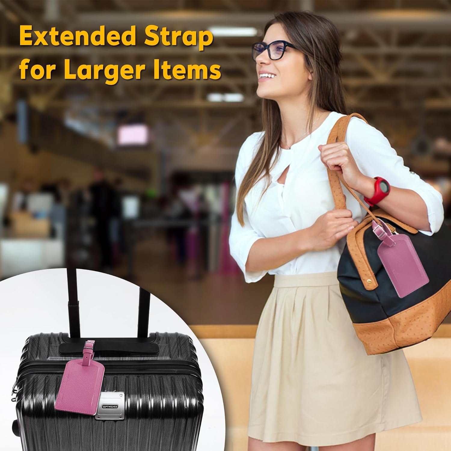 - Durable & Practical: Crafted from premium faux leather,these travel tags are designed to be both hard-wearing and stain-resistant, combining lasting durability with stylish appeal.Our bag tags feature an extended strap for easy attachment to large items, ensuring they can withstand multiple long-distance trips