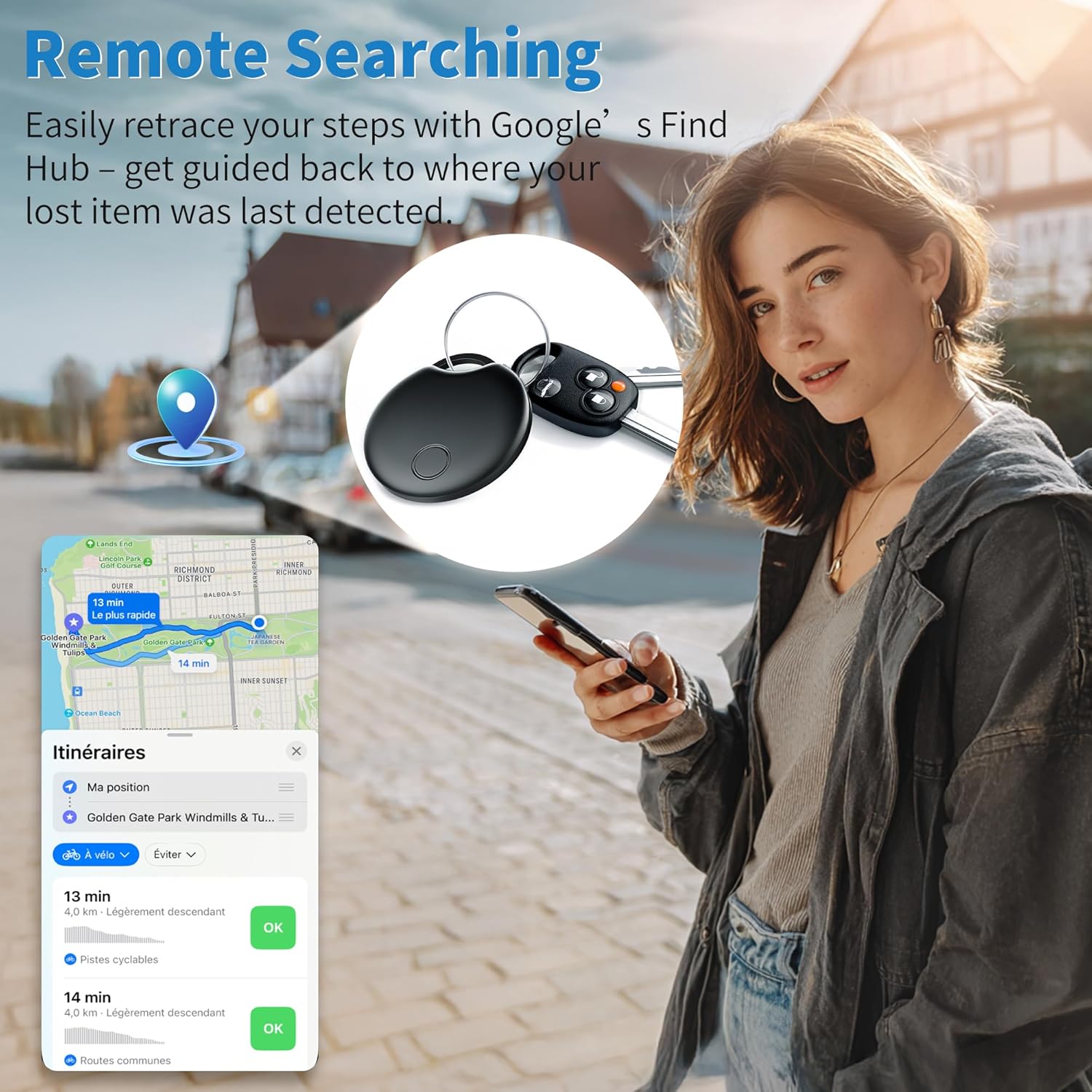 - Works with Android Find Hub – Track with Confidence: These air tracker tags 4 pack are fully compatible with Google’s Find Hub network, allowing you to locate your valuables directly through your Android device. Whether it's your keys, backpack, suitcase, pets, or bike – stay connected and never worry about losing them again. These trackers are the perfect everyday companion for Android users.