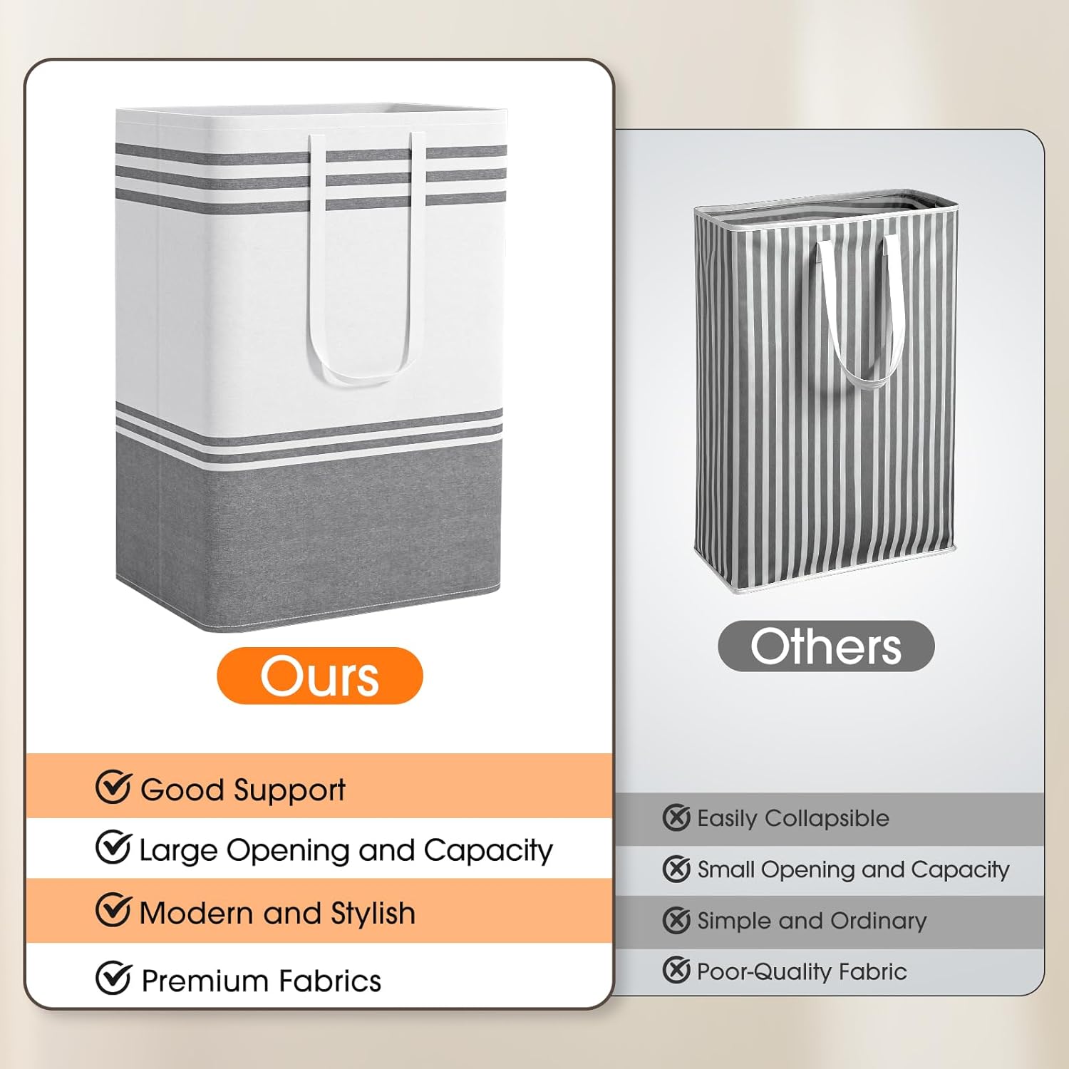 - [Freestanding Structure] The sturdy metal frame embedded at the top edge, coupled with the thickened coating inside the laundry hamper, enables the EpicTotes laundry hamper to stand firmly even when empty. EpicTotes laundry hamper just needs to be unfolded and can be used directly, without any assembly. The freestanding structure combined with the large opening design of the EpicTotes laundry hamper makes it more convenient for you to place items inside