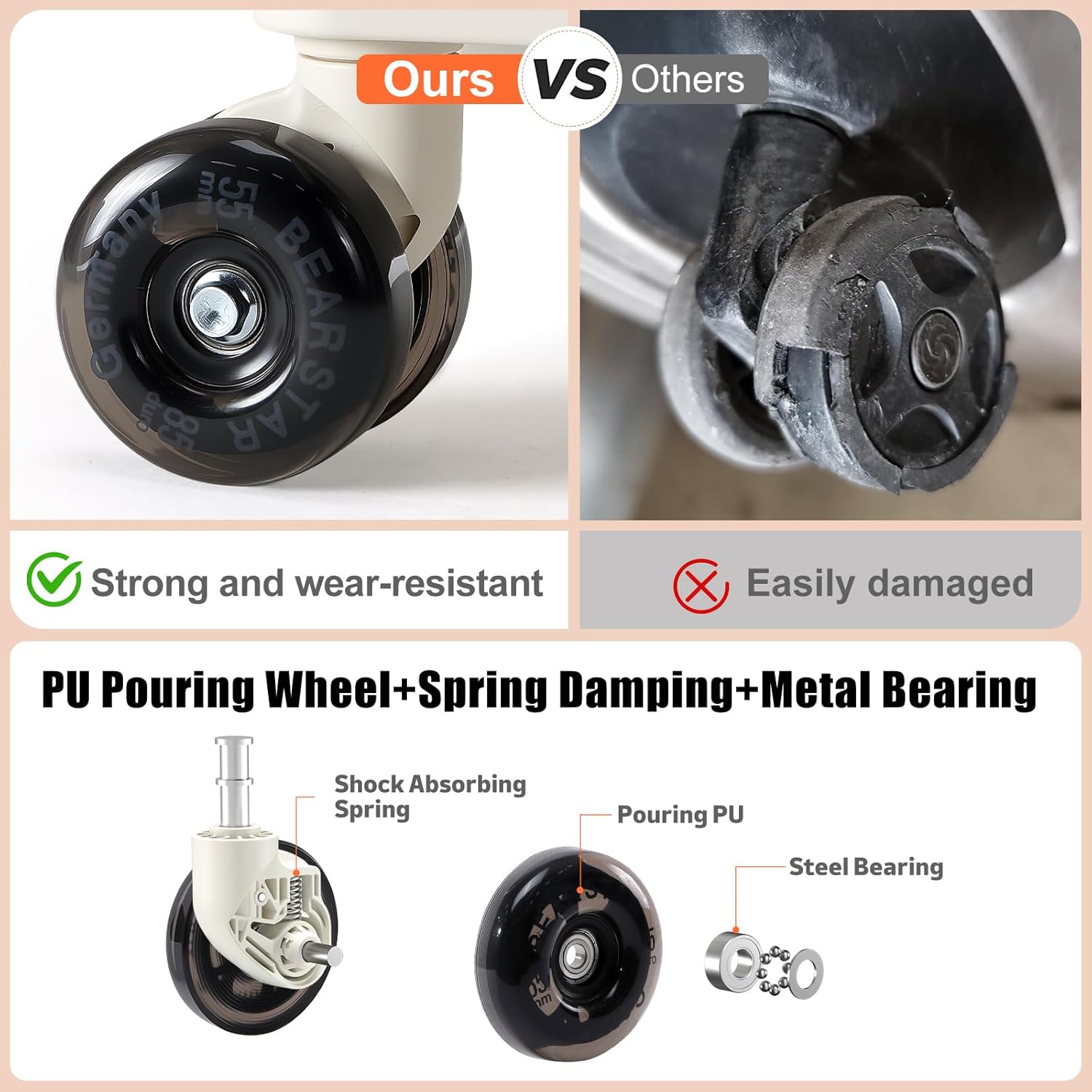 - JELLY WHEELS: The wheels determine the durability of the luggage. The suitcase is equipped with PU infused reinforced jelly wheels and shock absorbing springs are added. Not only stylish in appearance, but also smoother, more wear-resistant and shock-absorbing
