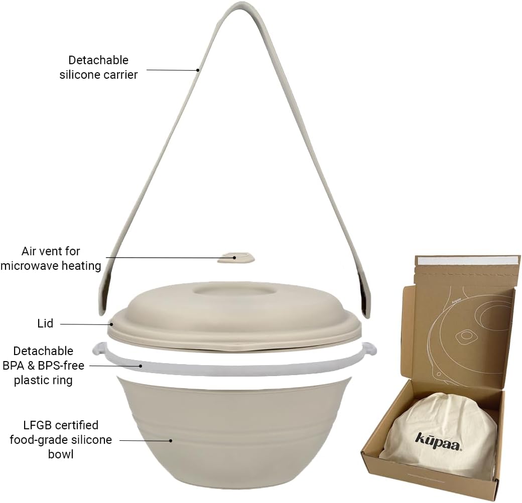 kūpaa Bowl & Carrier Duet – Microwave Safe Silicone Lunch Box For Adults– Collapsible, Leakproof, Food-Grade, Reusable To-Go Container (Shell)