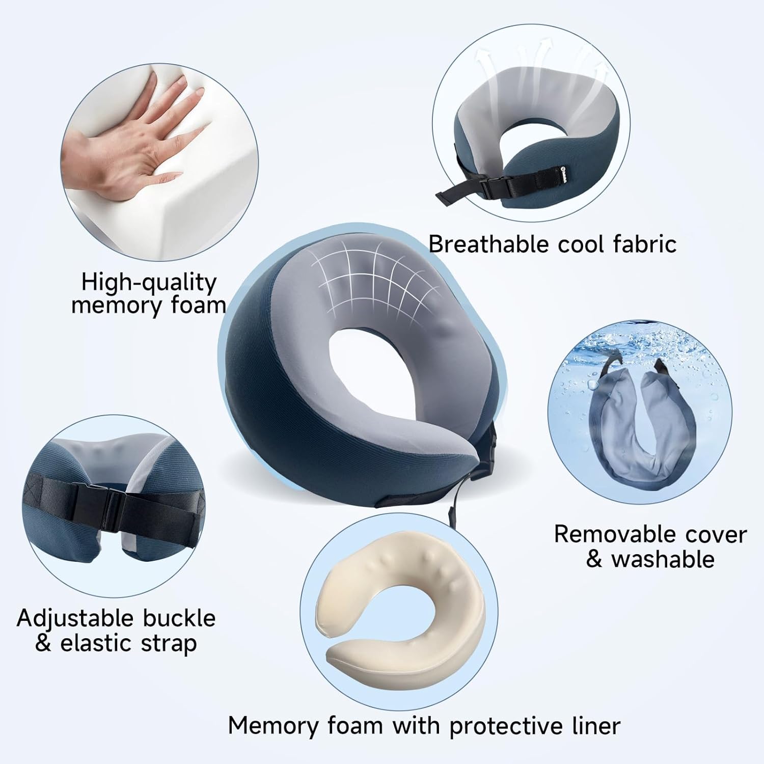 - BREATHABLE & REMOVABLE COVER - The travel pillow cover is made of soft and breathable sports fabric. Baby-grade skin-friendly material. The travel pillowcase is removable for washing and also supports washing in the washing machine. Travel neck pillow are suitable for all seasons, definitely a bonus for road trips, flights, and everyday travel.