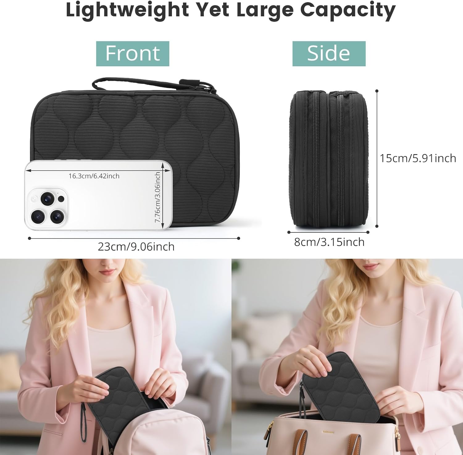 Skycase Tech Pouch - Lightweight Electronics Organizer Travel Case, Double Layers Travel Cable Organizer, All-in-One Storage Bag for Charger, Cord, Phone, Flash Drive, Accessories