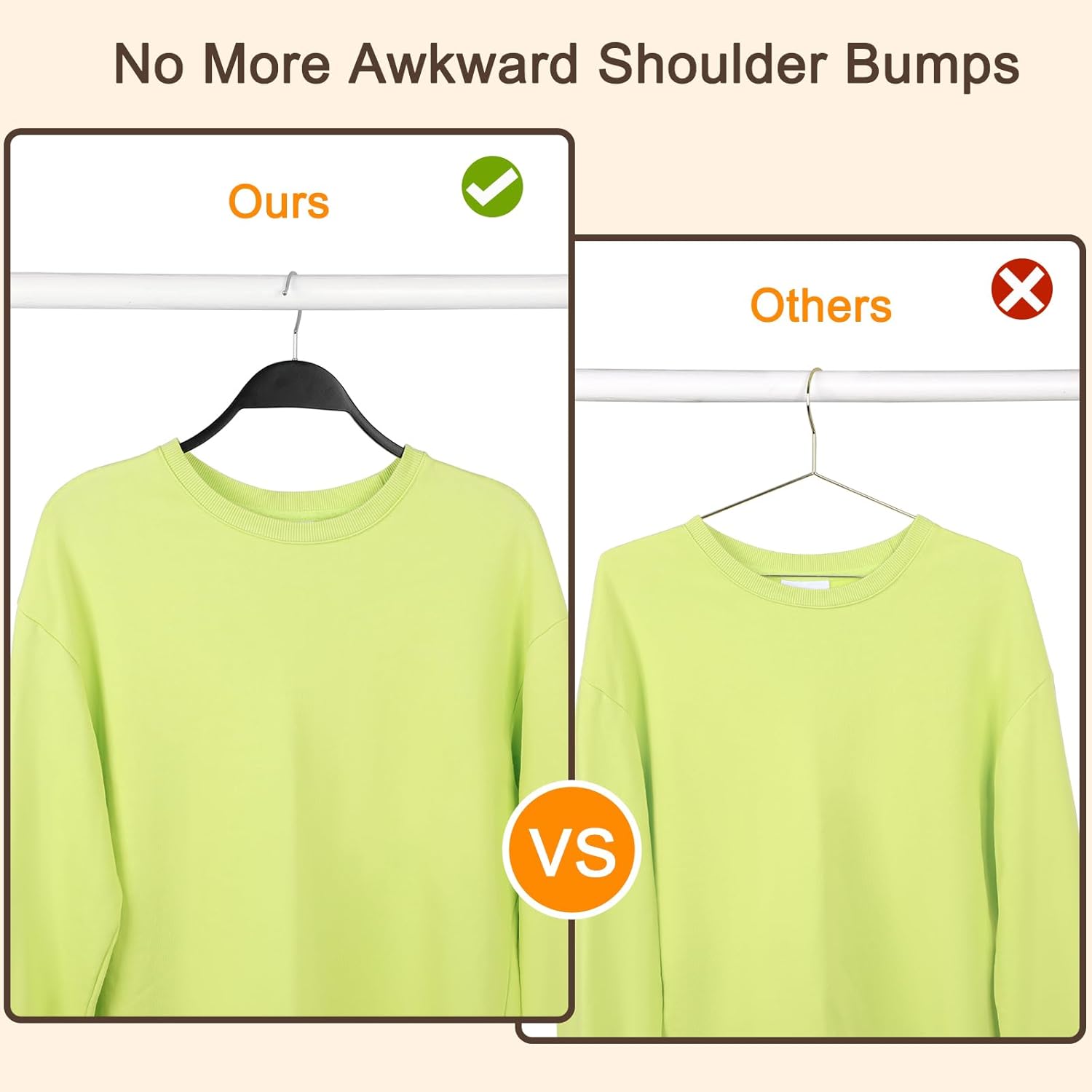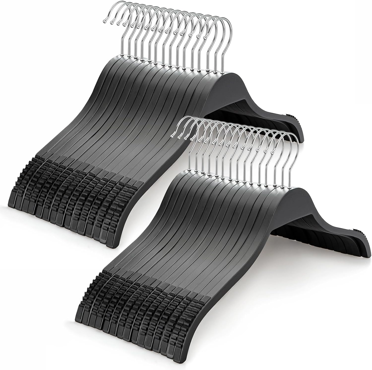 - Ergonomic Design: The shoulder contours of the hanger perfectly adapted to the curve of the human body, keeping your clothes in nice shape and wrinkle free; No more awkward shoulder bumps on sweaters or coat