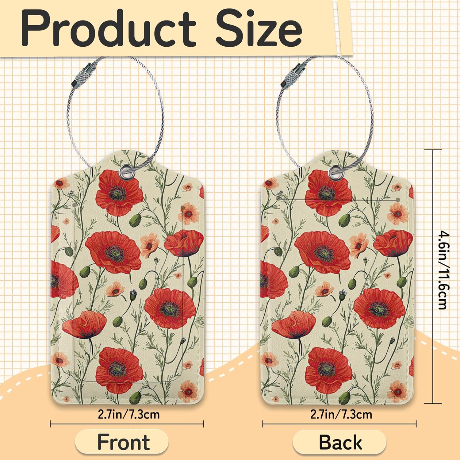 3 PCS Red Poppy Flower Luggage Tags,Suitcase Tags Privacy Cover ID Label with Stainless Steel Loop and Address Card for Travel Bag Suitcase