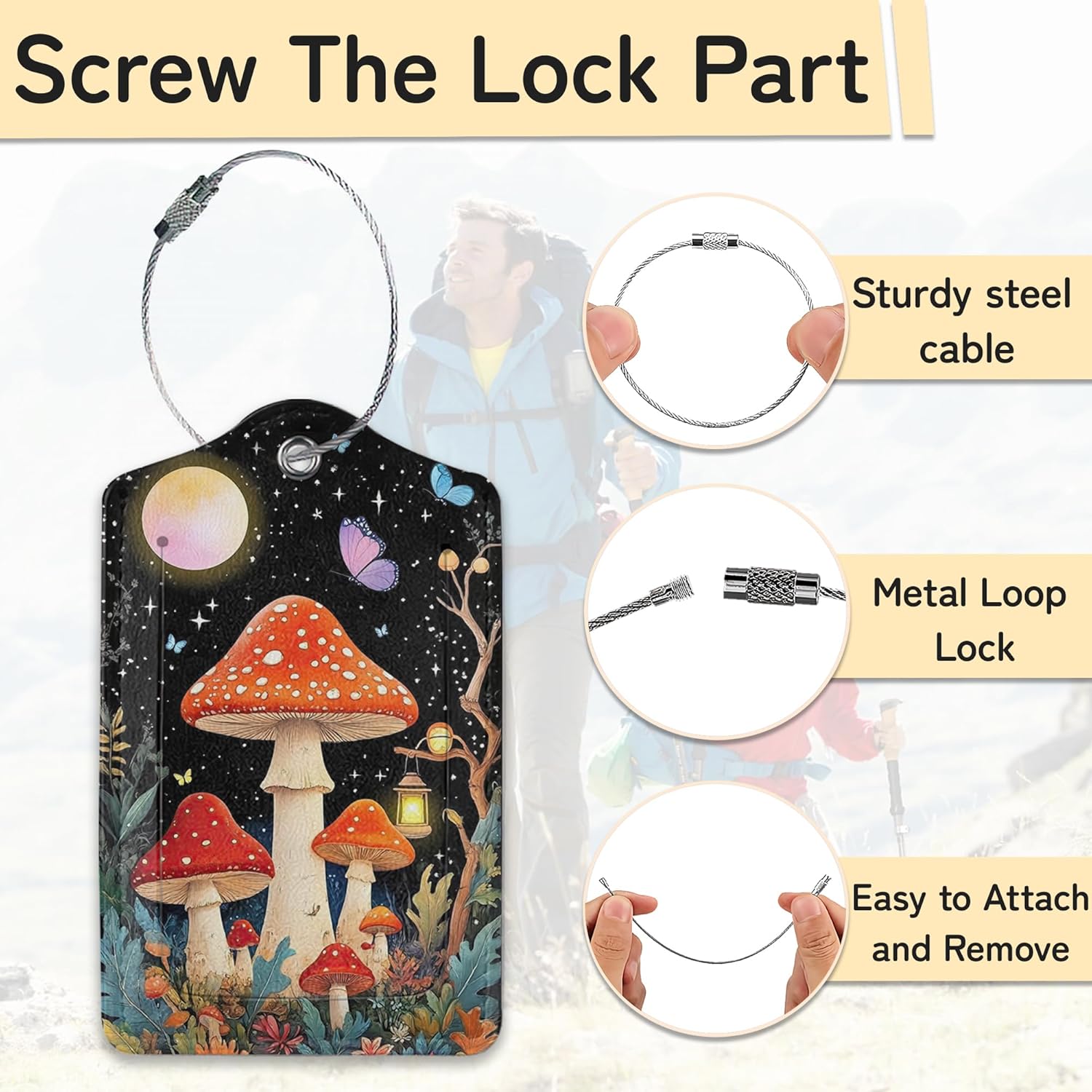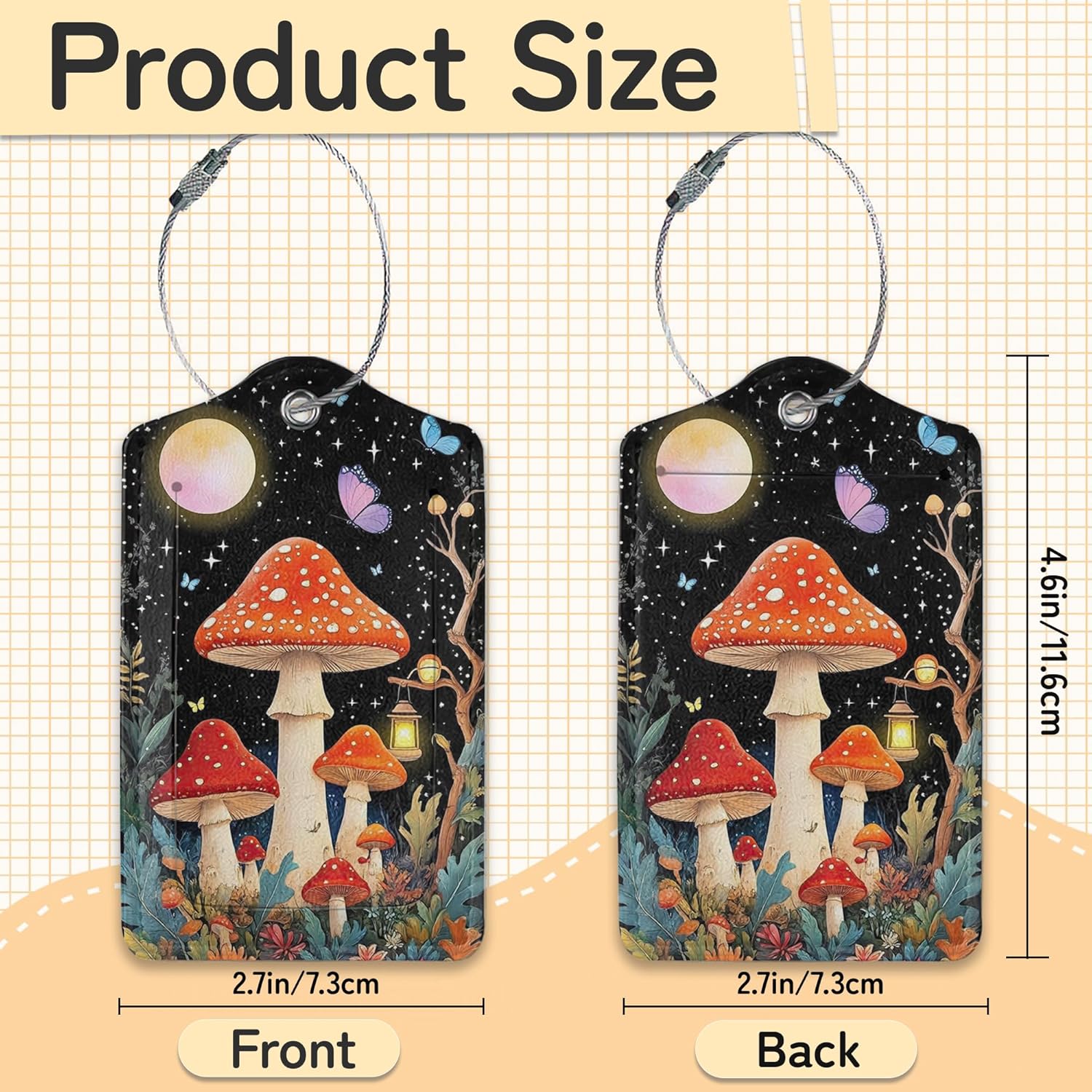 3 PCS Mushroom Luggage Tags,Colorful Butterfly Moon Star Suitcase Tags Privacy Cover ID Label with Stainless Steel Loop and Address Card for Travel Bag Suitcase