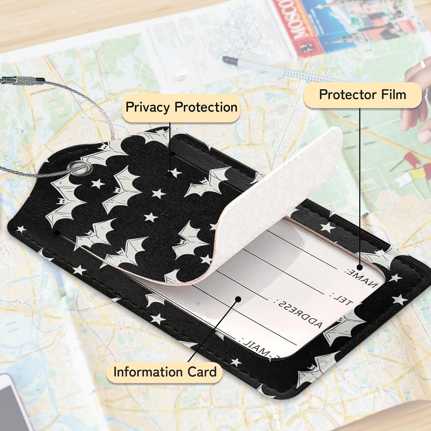 3 Pack PU Leahter Happy Halloween Luggage Tag with Stainless Steel Loop,Travel Suitcase Labels with Privacy Cover ID Label Quickly Spot for Bags