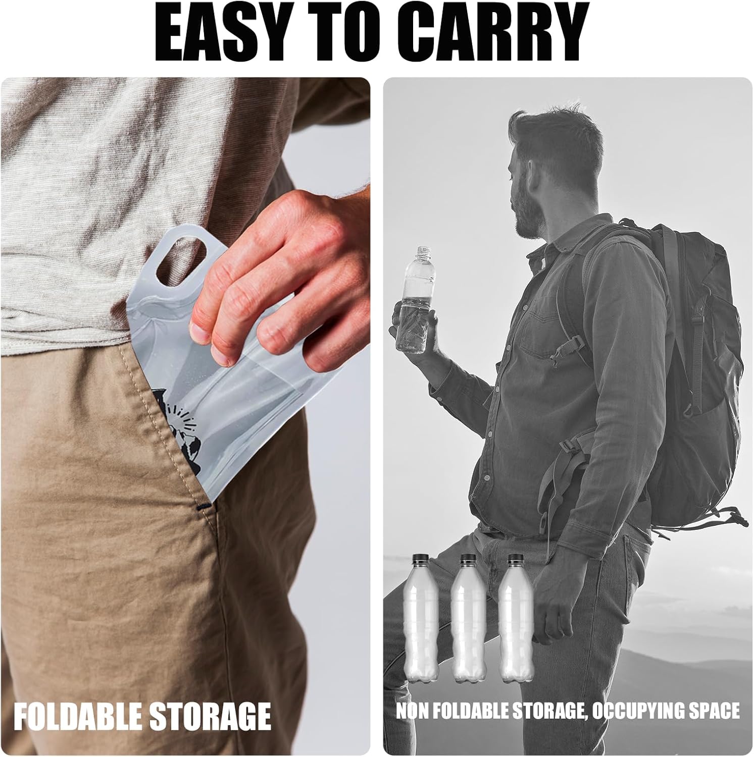 - Reusable: This 1L water bottle is reusable and can be dried and stored after use. Next time use, rinse with clean water to ensure safe use. The 4-piece combination set is perfect for family use, and the ultra light foldable water bottle is an ideal choice for staying hydrated and refreshed while hiking, camping, jogging, cycling, or traveling