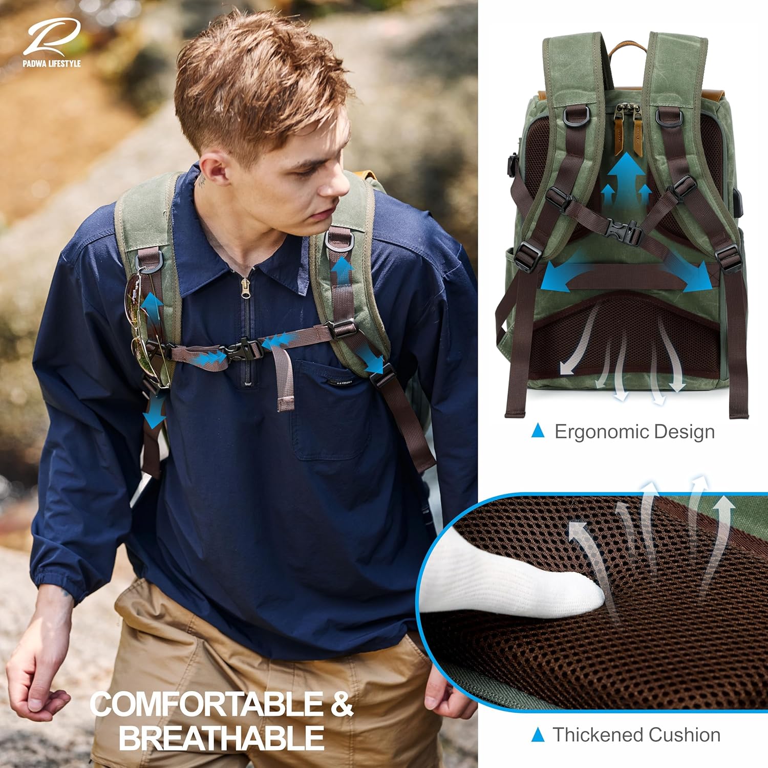 Padwa Lifestyle Green Camera Backpack - Waxed Memory Canvas Camera Bag, Multi DSLR SLR Large Camera Backpacks for Photographers with 16β Laptop & Lens Compartment and Tripod Holder & Weather Resistant