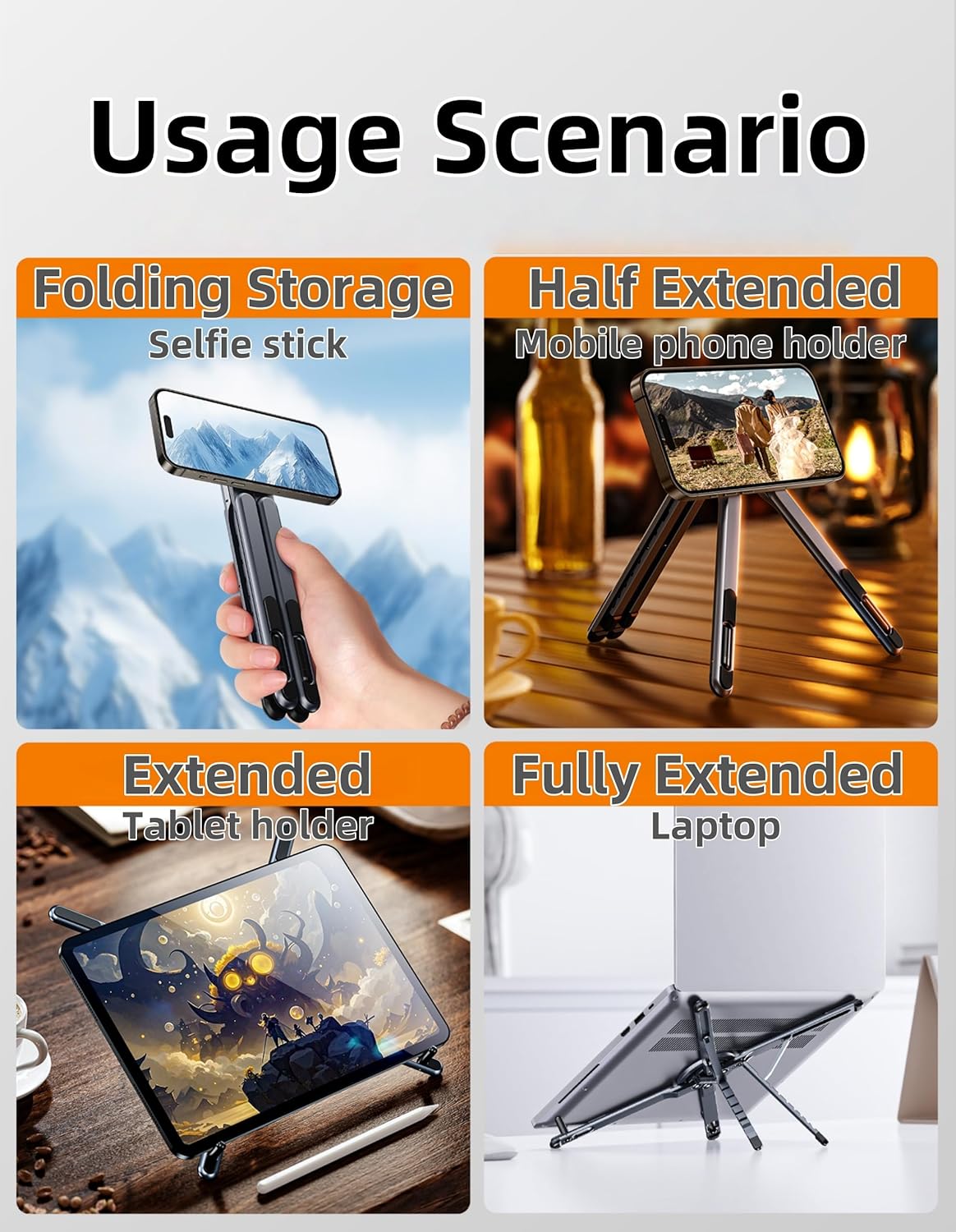 3-in-1 Folding Aluminum Alloy Laptop Stand, Height Adjustable Ergonomic Computer Riser Holder for Phone/Tablets/Computers, Portable Notebook Mount for Desk