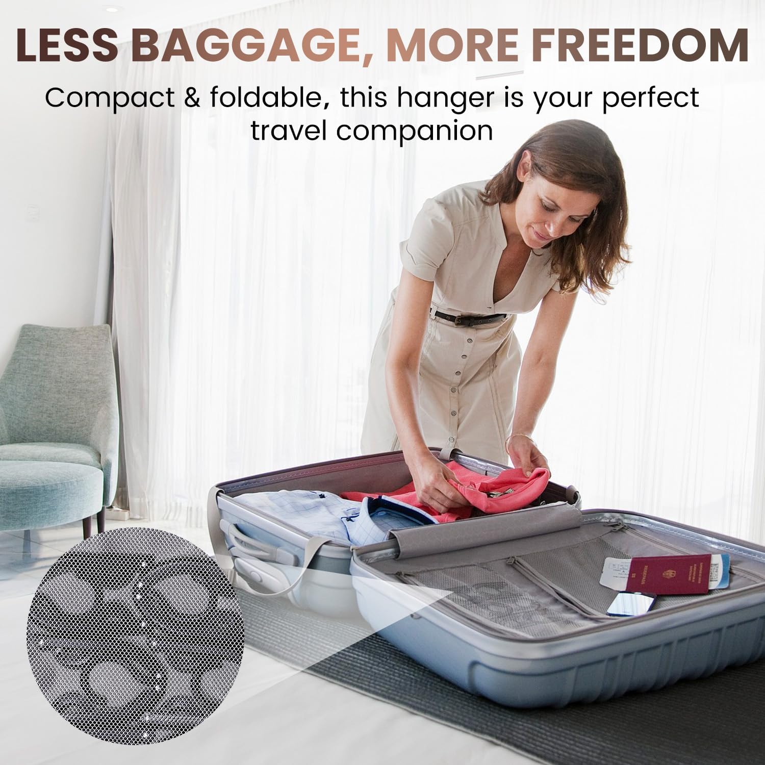 - Ultra-Lightweight & Compact Travel Hangers: Each foldable travel hanger weighs only 28g, with a fully folded size of 5.1×2.9 inches—takes up minimal space. Easily fits into a woman’s handbag or travel backpack to save valuable luggage room, making it a top 2025 carnival cruise ship essential for all your trips.