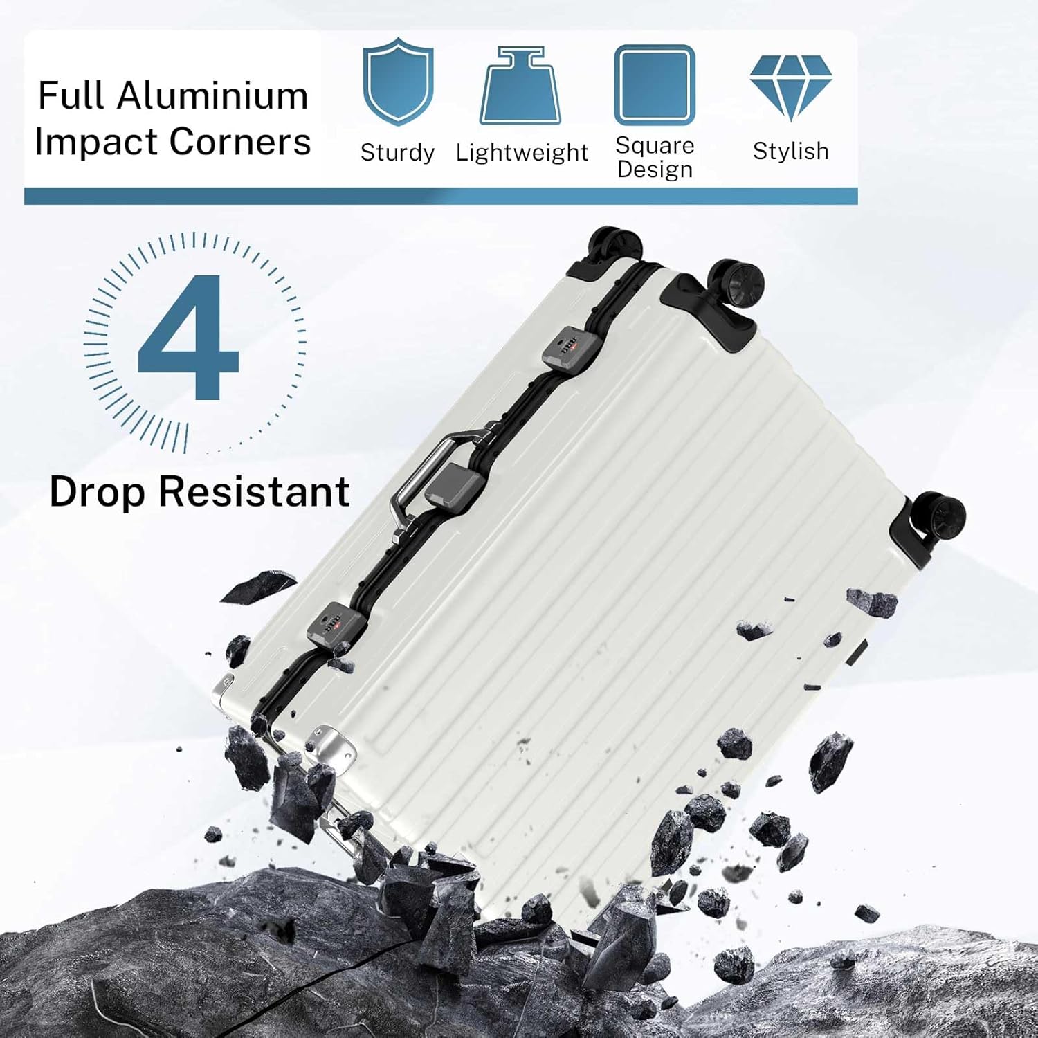 Krute Luggage 28 Inch Aluminum Frame Luggages TSA Lock No Zipper Checked Suitcase with Spinner Wheels Hard Shell Lightweight PC+ABS Large Suit Case