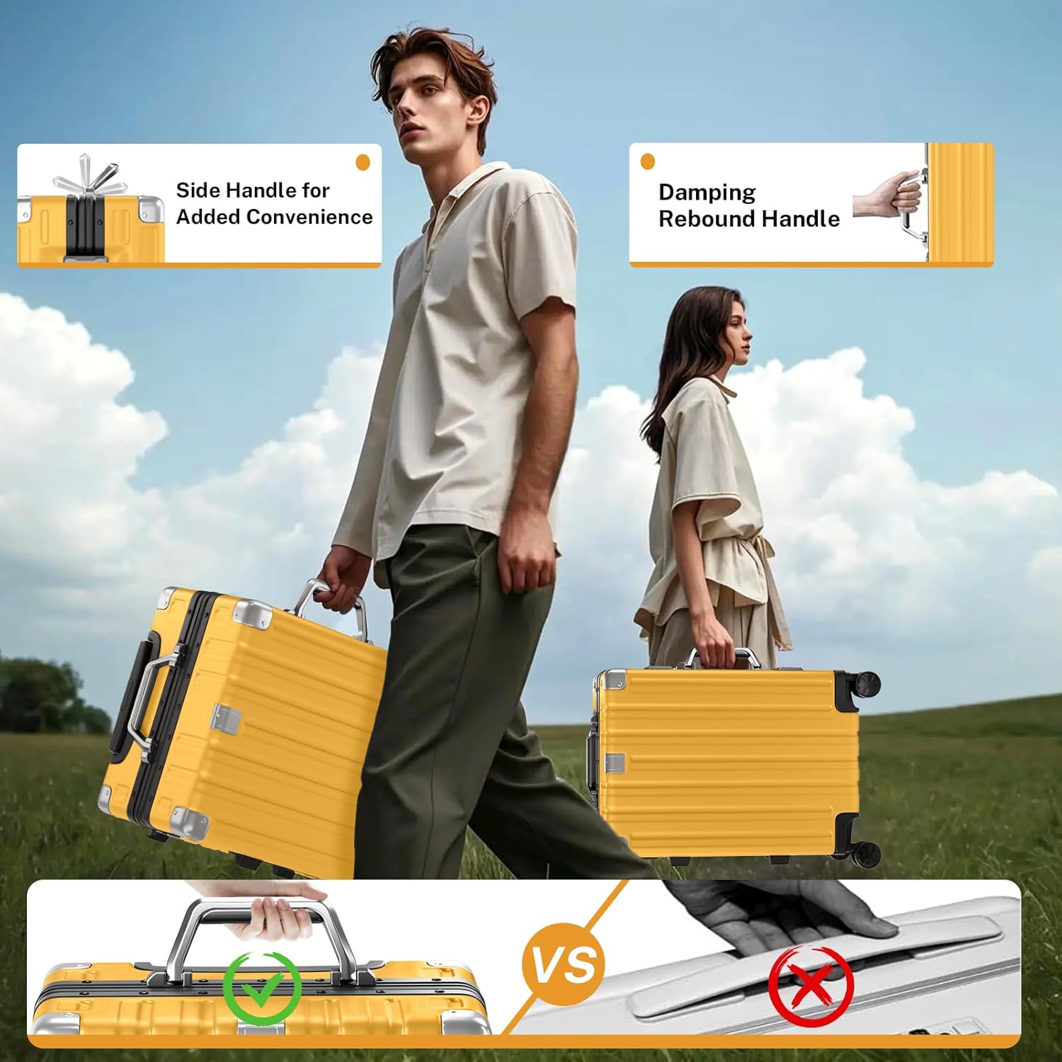 - 【Aluminum Frame Luggage】 We include 70% PC for high quality. PC is durable and strong to protect belongings. 70% Strong (PC) + 30% Light(ABS) makes it lighter,while reinforced aluminum frame provide added durability for demanding travel. The sturdy suitcase protects belongings even with rough handling.