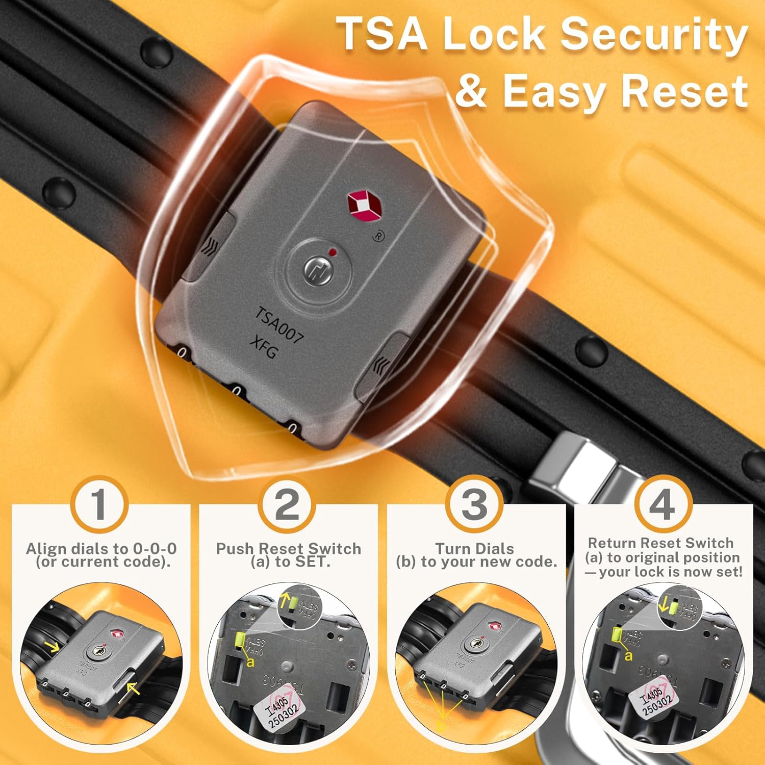 - 【TSA Lock Protects Luggage Security】Featuring a sturdy TSA lock, the suitcase enhances the security of your luggage during travel. (TSA locks do not come with keys). Its zipperless design protects belongings from unauthorized access.The zipperless design allows you to easily open the suitcase to find what you need in noisy environments without the need to go around the case a whole circle like a zip suitcase for you to open it.