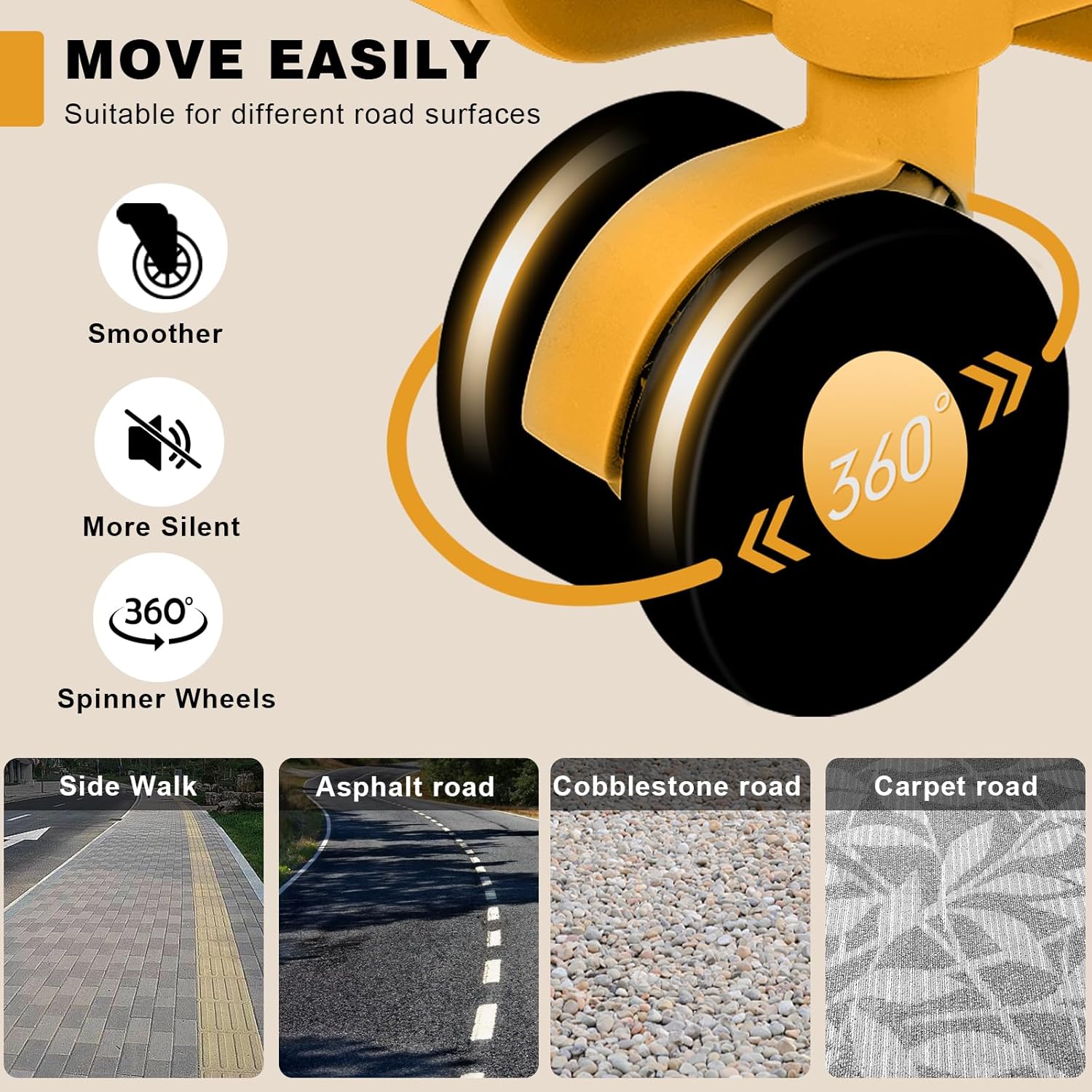 - 【360°Spinner Wheels】 The 4 multi-directional swivel wheels distribute the weight of your luggage evenly, ensuring an easy glide through a busy airport or train station, quietly and smoothly. The double wheel design is more durable.