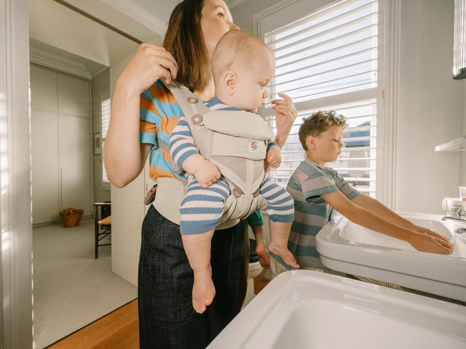 Ergobaby Omni Classic Baby Carrier Newborn to Toddler - Breathable Baby Carriers for Summer - All-Position Carrier with Lumbar Support (7-45 Pounds), Mesh, Natural Beige