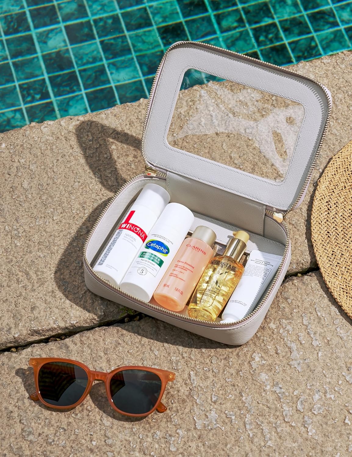 - [Premium Material and Durability] β The clear cosmetic cass, both the exterior and interior, is crafted from high-grade saffiano faux leather, which is highly scratch resistant, durable and exceptionally easy to keep clean. It features a smooth zipper for secure closure, and elegant light gold metal hardware accents, adding a luxurious and sophisticated touch to the bag's overall design.