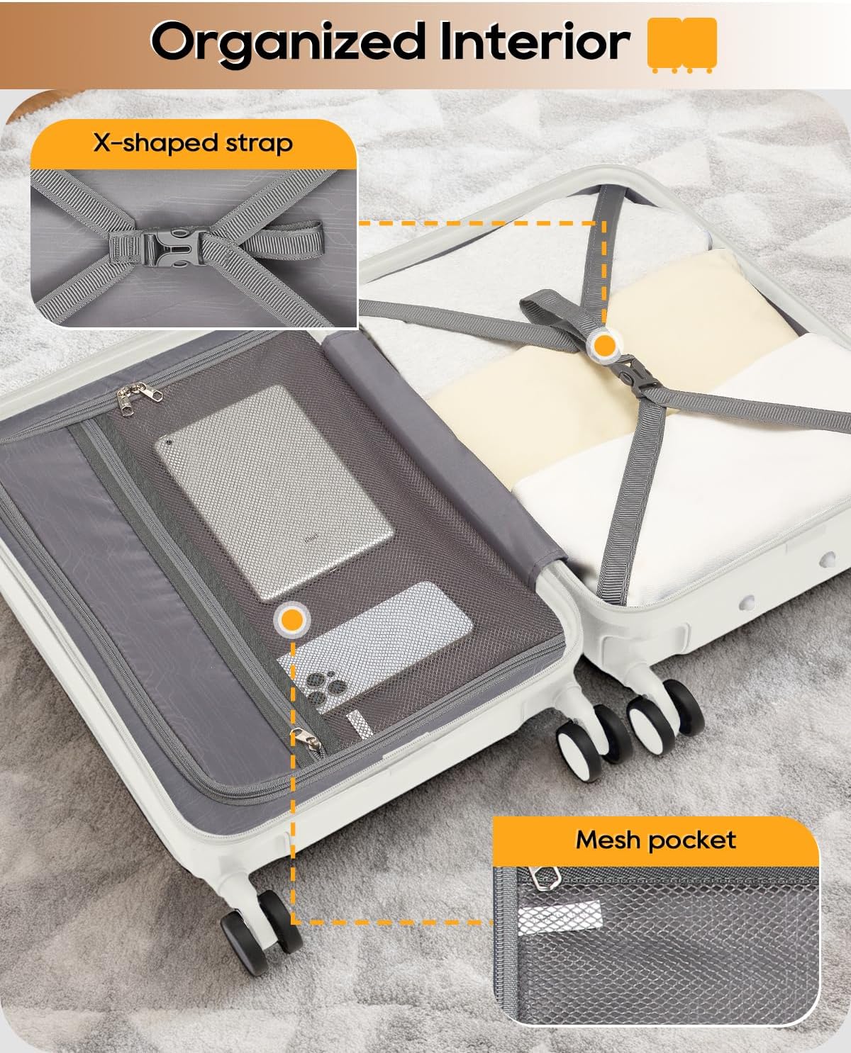 Joyway Carry on Luggage Airline Approved with Front Pocket, Hardside 20 Inch Travel Luggages with Cup Holder, Carry-on Suitcase with Spinner Wheels for Men and Women (White, 20 Inch)