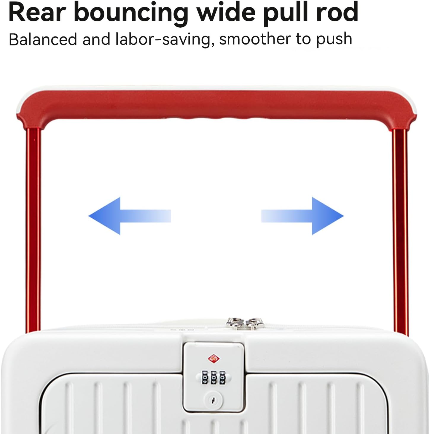 - 【FRONT POCKET LUGGAGE】Travel smarter, not harder! This carry on travel luggage features a smart front-opening design that allows quick 45° to 135° access to your most-needed items—like your laptop, passport or charger—without having to lay the bag flat. Side hooks and cup holder designs can also help you free up your hands. Perfect for security checks or on-the-go retrieval, this innovative design of multifunctional travel suitcase saves time and keeps you organized throughout your journey.
