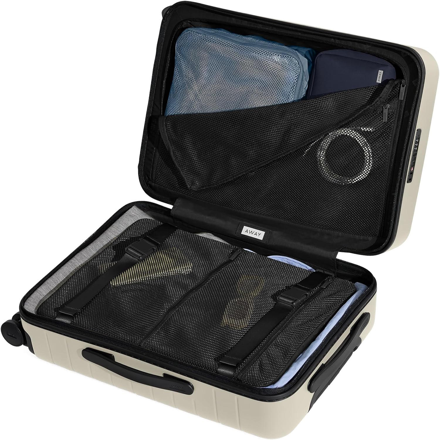 - Lightweight and durable design: Away’s Classic luggage is designed with a durable, water repellent, and lightweight 100% polycarbonate shell. Measuring 15.4"L x 9.6"W x 22.7"H, This carry-on provides ample and secured storage.