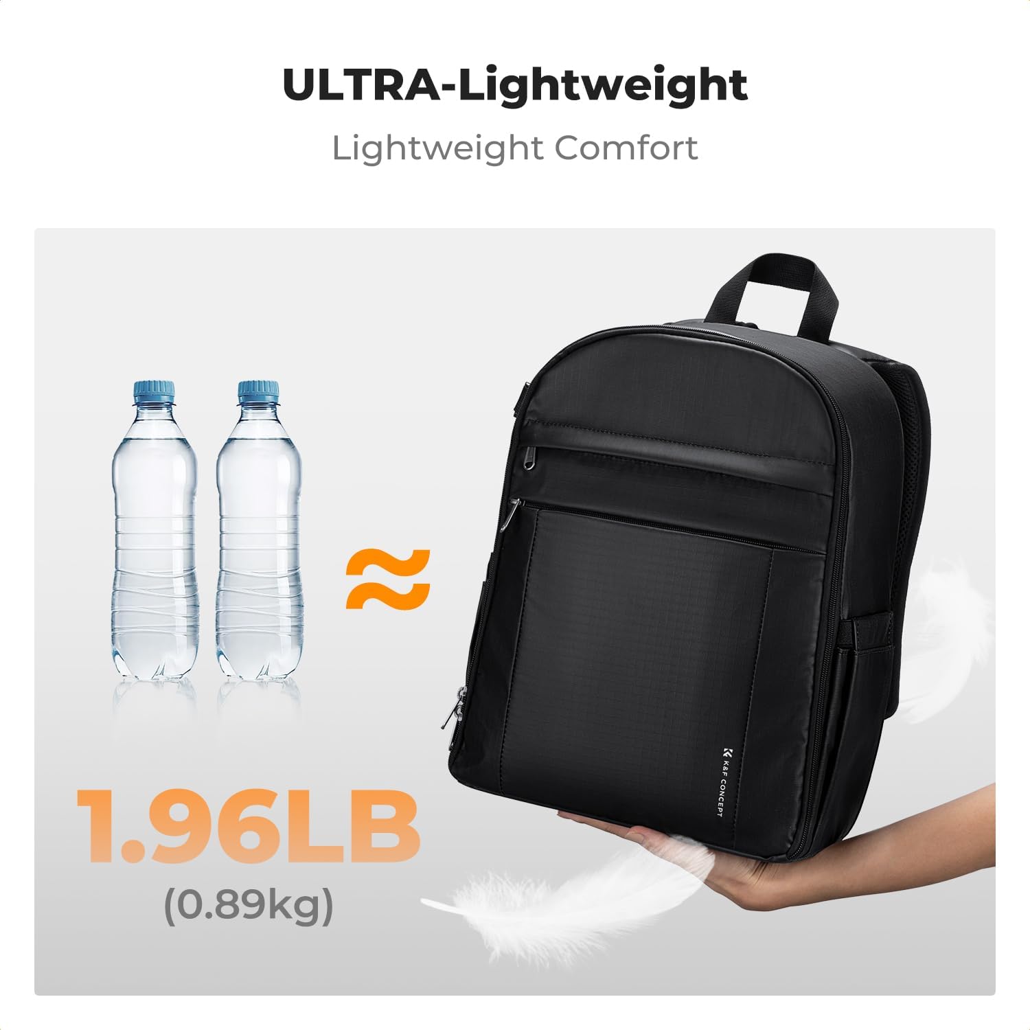 - 【Lightweight Design】K&F CONCEPT camera backpack only 1.96lb(0.89kg), made with durable lightweight fabric and minimalist structure, excellent overall weight control to reduce daily carrying burden. For photographers who pursue compactness and versatility, this camera bag is definitely the best choice.