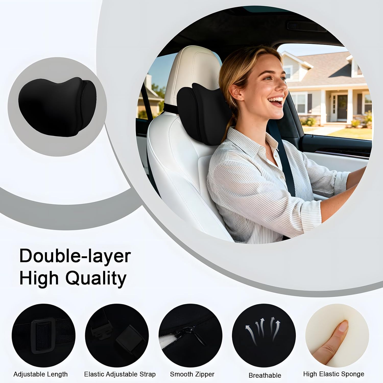 - 【Ergonomic Design for Ultimate Comfort】 Crafted based on ergonomic principles, this car neck pillow for driving is built to prioritize your comfort on every trip. It features a double-layer construction paired with a dual C-curve design—snugly fitting your neck muscles, delivering all-around support for your head, and boasting concave neck cushions to cradle you from head to cervical spine to shoulders.Whether you’re embarking on a long road trip or a short daily commute, it helps keep your cervical spine in proper alignment, easing tiredness and preventing that stiff-neck feeling after hours behind the wheel.
